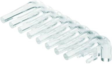 Leiterplattensteckverbinder. Flutlichtanzeige, Polzahl: 8. Einfach wirkungsvoll:Das Bindeglied zwischen LED und Frontpanel. Flutlichtanzeigen ermöglichen eine einfache überwachung der Schaltzustände ohne Sonderkonstruktionen: Optischer Kunststoff leitet das Licht von gängigen LED's kostengünstig über einen Bogen bis in die Steckebene oder durch die Frontplatte. Die Lichtleiter-Elemente werden einfach hinter die zugehörigen abgewinkelten Stiftleisten (90 ° Abgangsrichtung) gerastet. Varianten mit unterschiedlichen Lichteintrittshöhen ermöglichen eine optimale Lichtausbeute für unterschiedliche LED-Bauformen bzw. - Höhen. Die Vorteile gegenüber herkömmlichen Lösungen: keine zusätzliche LED-Platine hinter dem Frontpanel erforderlich, keine "langbeinigen" LED's, mit separater Halterung notwendig. gebogene Lichtleitung für optimale Lichtausbeute. runde Lichtaustrittsform für einfache Frontplatten-Bohrungen, problemlose Einhaltung von Luft- und Kriechstrecken, abtrennbar für kleinere Polzahlen. Das Ergebnis: Vereinfachung des Herstellprozesses, Senkung der Kosten und Vereinfachung des Designs.