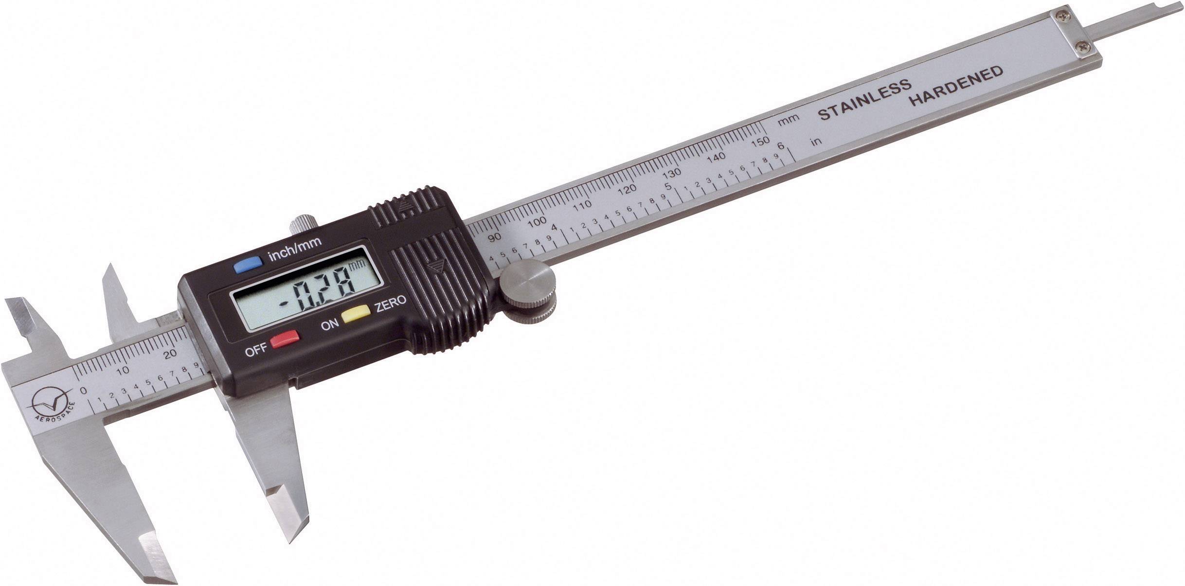 Digitaler Messschieber PMS 150. Hochwertiges und robustes Gehäuse, Dauer-LC-Anzeige. Veränderbare Nullpunktstellung auch für Differenzmessungen, Tiefen- und Innendurchmesser können ebenfalls gemessen werden. - Art des Displays: LCD - Maßeinheit: mm, inch - Messgenauigkeit: +/- 0,02 mm % - Art der Batterien/Akkus: SR44W - Anzahl der Batterien/Akkus: 1 Batterie - Batterien im Lieferumfang enthalten - inkl. Kunststoffetui - Farbe: silber.