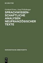 Sprachwissenschaftliche Analysen neufranzösischer Texte Romanistische Arbeitshefte 27