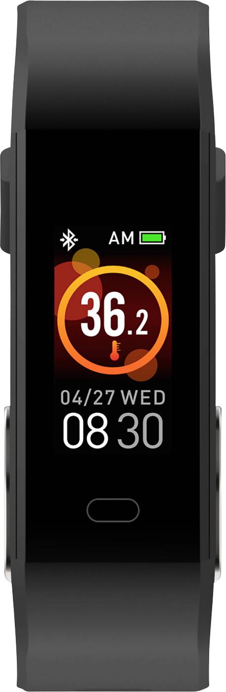 Bluetooth-Fitnesstracker mit 0,96“ Farbdisplay · Bedienung über den Touchbutton · Schritt- und Kalorienzähler, Distanzmesser · Aktivitätsaufzeichnung und Schlafüberwachung · Akklaufzeit: Bis zu 7 Tage Standby · Weitere Funktionen: Herzfrequenzsensor, Körpertemperatursensor, Caller ID Anzeige, SMS-Benachrichtigung, · IP-67 spritzwassergeschützt · App für Ihr iOS oder Android Smartphone