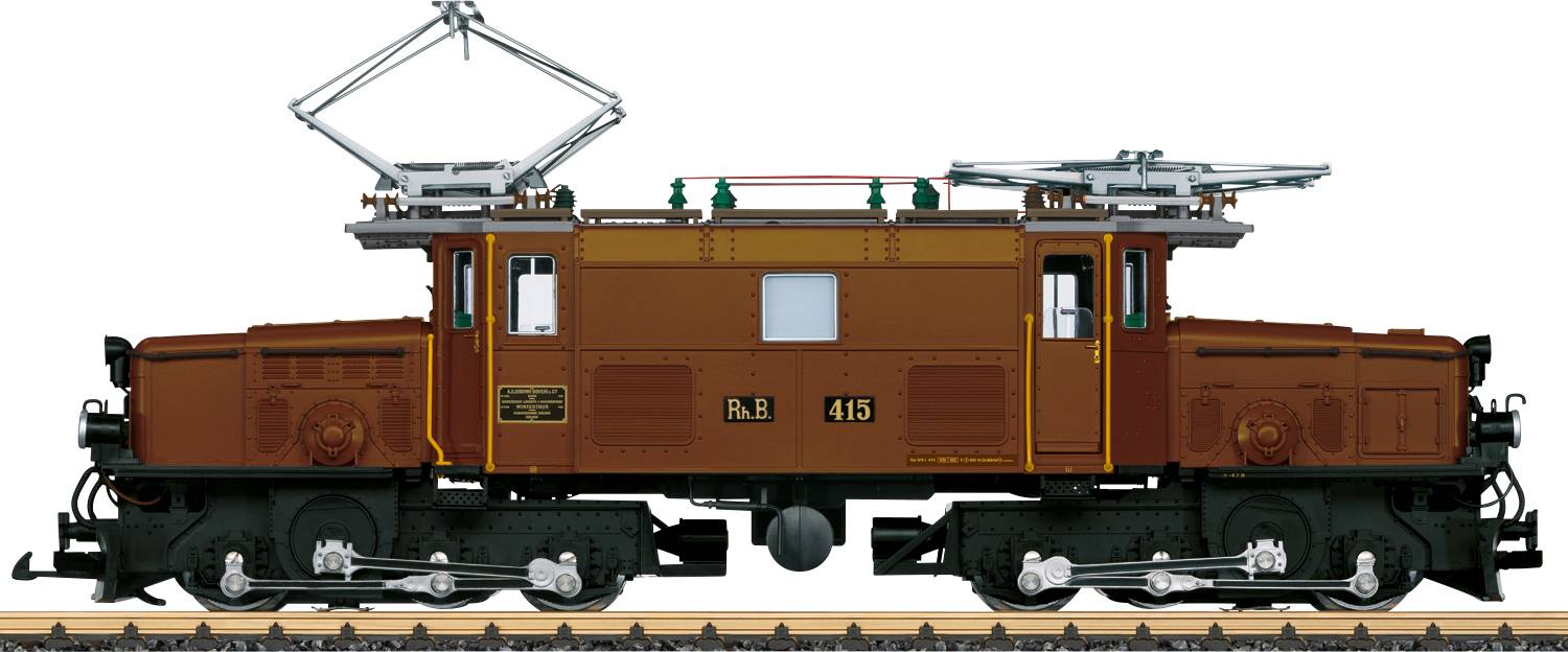 Modell einer Elektrolok der Baureihe Ge 6/6 I der RhB, dem legendären Krokodil. Farbgebung und Beschriftung in der Ausführung der Epoche VI, Betriebsnummer 415 so wie heute noch eine Lok existiert.