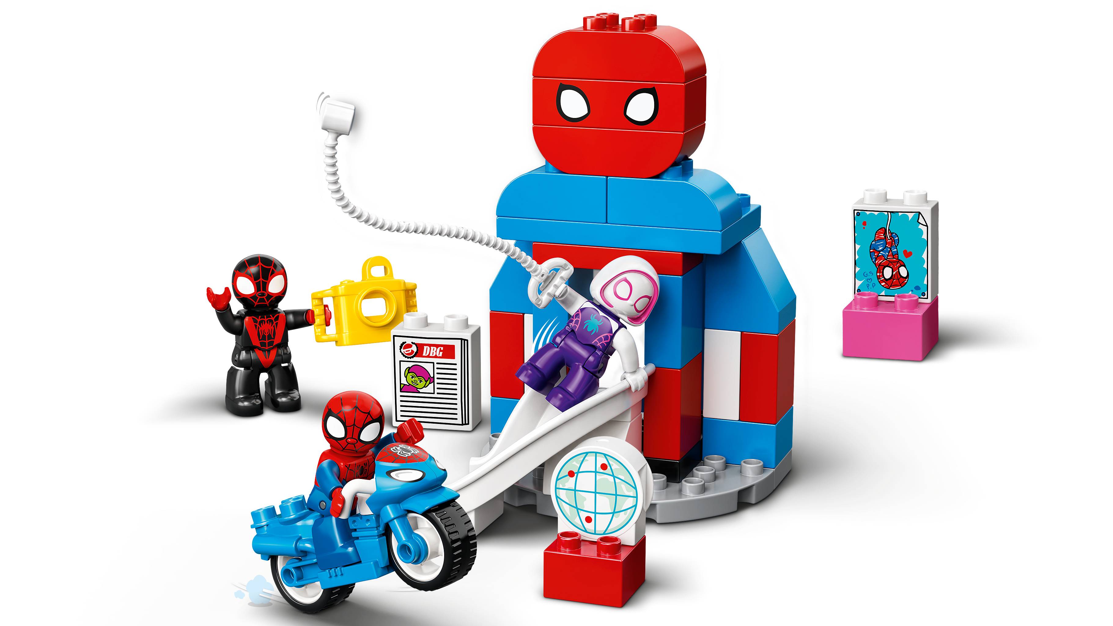 LEGO® DUPLO® Marvel Spider-Mans Hauptquartier (10940) ist das perfekte Geschenk für angehende Superhelden. Das vielseitige Spielset mit drei Superhelden-Figuren bietet unzählige lustige Spielmöglichkeiten.Spannende Abenteuer mit Spider-Man und seinen FreundenDieses vielseitige Spielset kombiniert die spannenden Abenteuer aus der Disney+ TV-Serie „Spidey und seine Super-Freunde“ mit den entwicklungsfördernden Eigenschaften eines LEGO® DUPLO® Modells. Das Set beinhaltet 3 Superhelden – Spider-Man, Miles Morales und Ghost Spider. Das spinnenförmige Hauptquartier umfasst lustiges Zubehör für fantasievolle Rollenspiele, beispielsweise ein Motorrad, eine Rutsche und eine Seilschaukel.Fantasievolle Rollenspiele für KleinkinderLEGO DUPLO Spielzeuge lassen Kinder spielerisch lernen und sich frei entfalten und Eltern viele wichtige Entwicklungsschritte ihrer Kleinkinder miterleben.