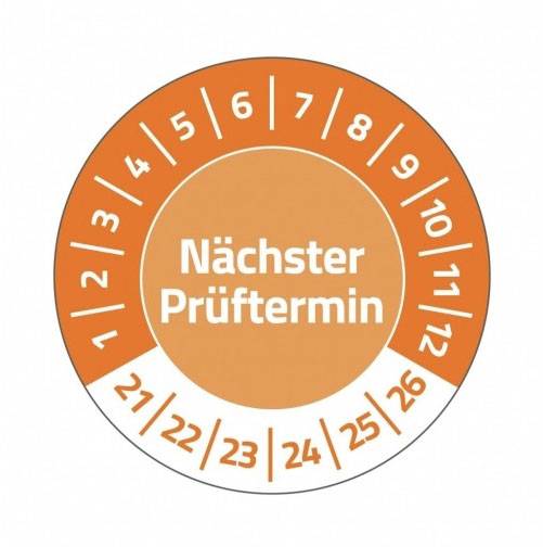 Von Büroausstattung bis hin zu Produktionsmaschinen – die gesamte Ausstattung eines Unternehmens muss vom Arbeitgeber regelmäßig auf seine Sicherheit hin geprüft werden, sonst muss er bei Unfällen haften. Wann immer eine Betriebsmittelprüfung ansteht, kommen Prüfsiegel zum Einsatz. Sie sind praktisch in der Handhabung und helfen, den Überblick zu behalten, wann die nächste Prüfung fällig ist. Die orangen Prüfplaketten im runden Ø 30 mm Format im praktischen Spenderheft können besonders einfach und direkt vor Ort verwendet werden. Der Aufdruck "Nächster Prüftermin" mit 12 Monaten und den Jahren 2021-2026 ist gut übersichtlich und gibt auf einen Blick die nötigen Informationen.