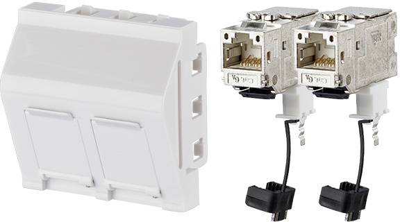 Keystone-Adapter, M45, 2 Ports Cat6A 270°, Alpinweiß 9010 Set: Keystone-Adapter + 2x C6A modul Keystone