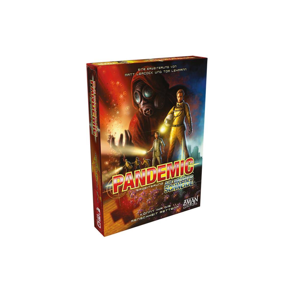 Mit sieben neuen Rollen, neuen Fähigkeiten und acht neuen speziellen Events erweitert "Auf Messers Schneide" das Basisspiel um zusätzliche Möglichkeiten und Kombinationen. Außerdem können nun bis zu fünf Spieler zusammen gegen die Krankheiten antreten. Darüber hinaus können nun verschiedene Herausforderungen hinzugefügt werden, mit denen das Spiel ganz neue Elemente erhält. So kommt in der Mutations-Herausforderung eine fünfte, völlig unvorhersehbare Krankheit ins Spiel, oder ein Spieler spielt in der Bio-Terroristen-Herausforderung gegen die anderen. Und in der Viraler-Strang- Herausforderung wird eine Krankheit besonders tödlich.
