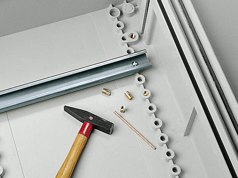 Zur Befestigung von Einbauteilen an den angepressten Befestigungsnocken in der Tür und an der Gehäuserückwand. Eindrehbare Schraubenlänge 8 mm.