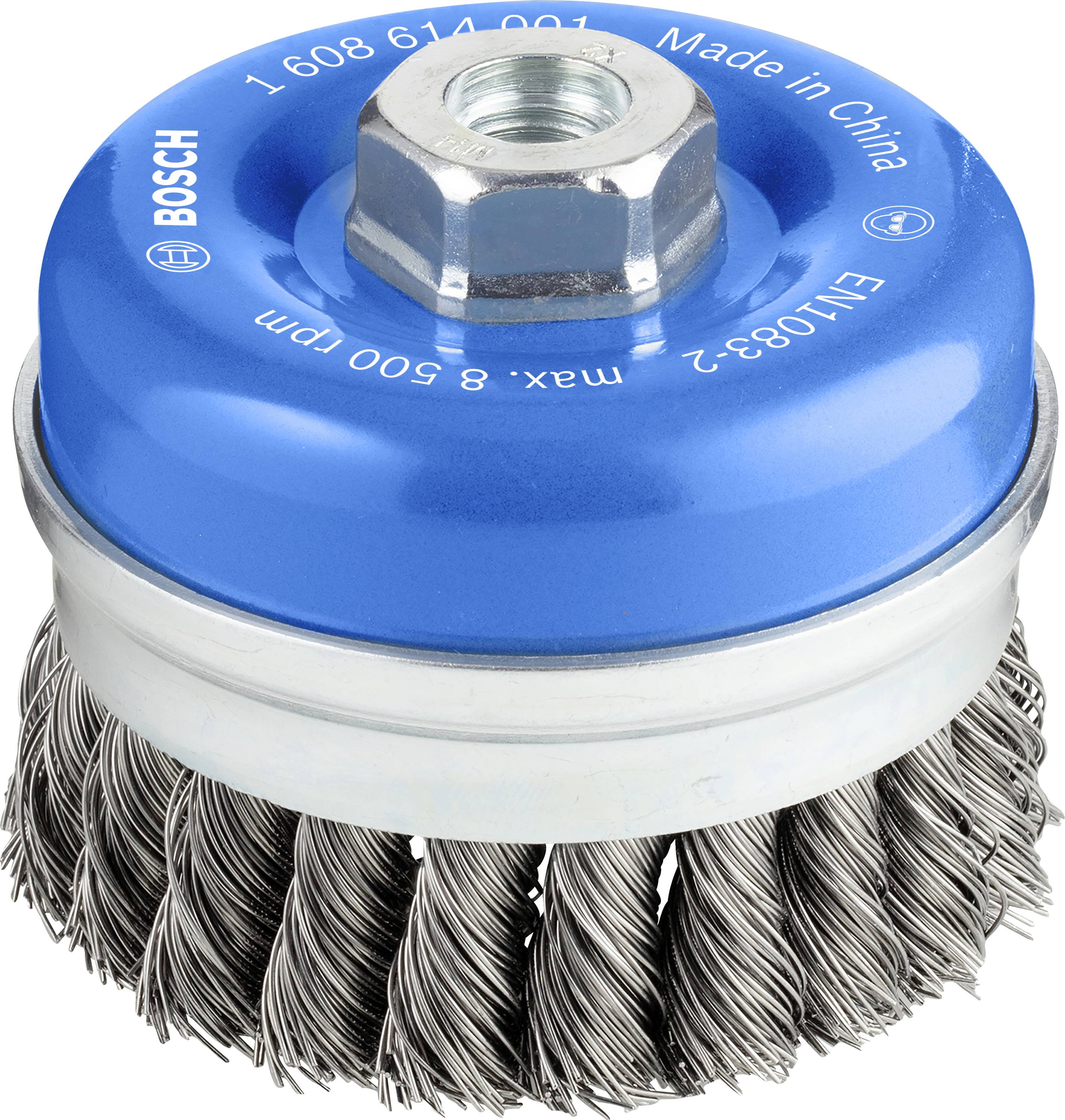 Die Topfbürste Heavy for Metal liefert ein besonders grobes Oberflächenfinish. Diese Topfbürste ist mit gezopftem Draht für besonders intensives Reinigen ausgestattet. Ideal für Metall und geeignet für Reinigungsarbeiten wie Entfernen von starkem Rostbesatz, Unterbodenschutz, Farbe und Lack von mittelgroßen bis großen Stahlflächen. Sie ist für die Verwendung mit Winkelschleifern Gewinde M14 bestimmt. Drahtbüsten werden in verschiedenen Stärken für verschiedene Schleifgrade angeboten. Stärkerer Draht arbeitet intensiver und schafft schnell Oberflächen, die allerdings grob sind. Dünnerer Draht sorgt für feinere und glattere Oberflächen. Durchmesser mm: 90, Drahtstärke mm: 0,50, Drehzahl, max. min-1: 8.500, Gewinde M: 14, Für Winkelschleifer, mind. ø (mm): 150