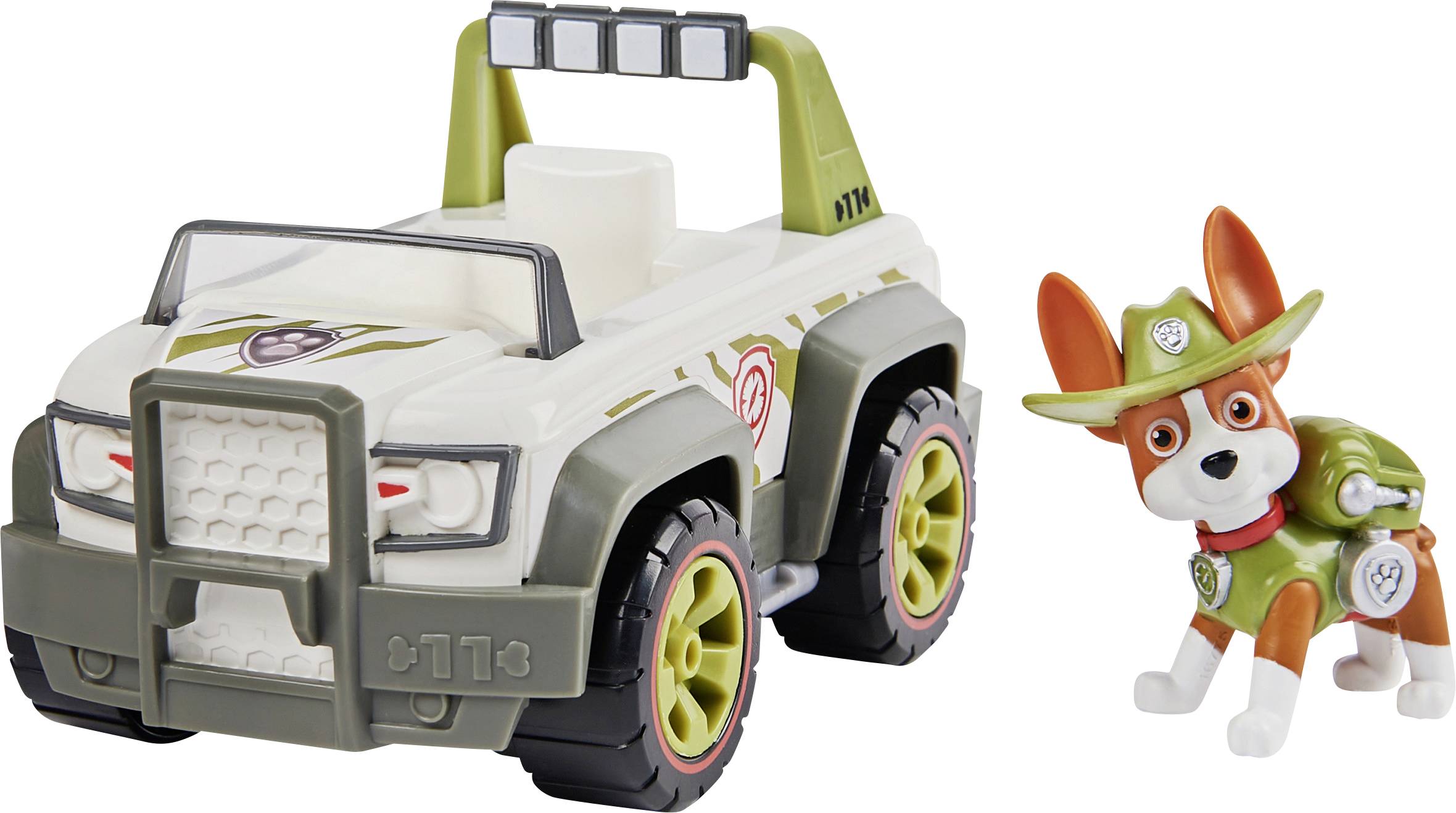 Tracker von der PAW Patrol wartet in seinem Dschungel-Cruiser startklar auf den nächsten actiongeladenen Einsatz. Wenn Hilfe gebraucht wird, kommt Tracker (Figur enthalten) auf den Fahrersitz und bricht auf funktionsfähigen rollenden Rädern zur Rettungsmission auf. Die authentischen Details und die realistische Ausstattung des beliebten PAW Patrol Dschungel-Hundes und seines Geländefahrzeugs lassen die spannende PAW Patrol lebendig werden. Das Spiel mit Tracker und seinem Dschungel-Cruiser regt die kindliche Fantasie zu Rettungsmissionen an, bei denen es um Freundschaft, Teamarbeit und Mut geht. Zusammen mit den anderen Hunden und ihren Rettungsfahrzeugen (jeweils einzeln erhältlich) kann Tracker mit seinem Dschungel-Cruiser die Welt in Adventure Bay noch besser retten!