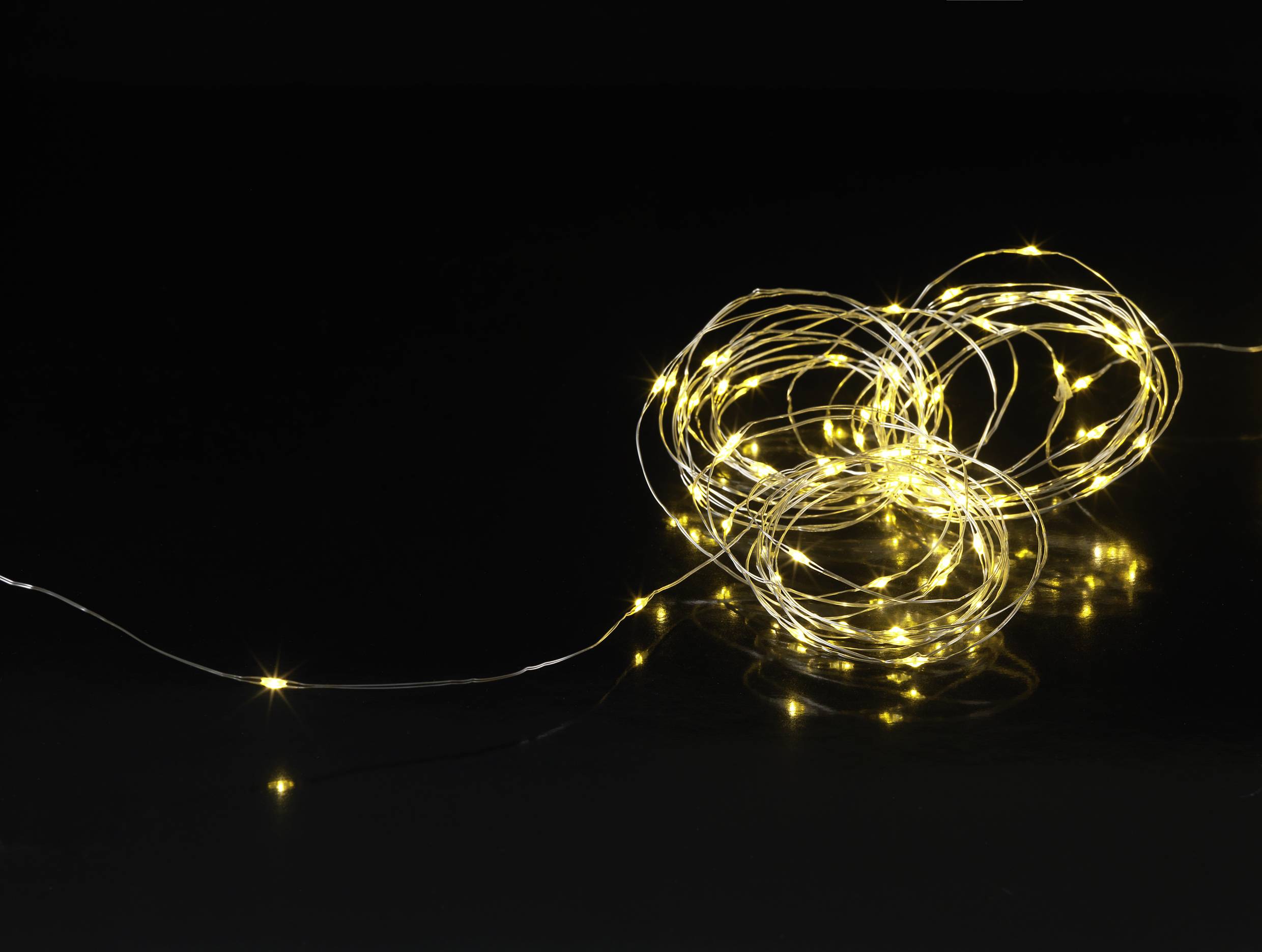 Sygonix SY-4722038 Mini-Lichterkette Innen/Außen batteriebetrieben Anzahl Leuchtmittel 50 LED Warmweiß Beleuchtete Länge: 4.9m