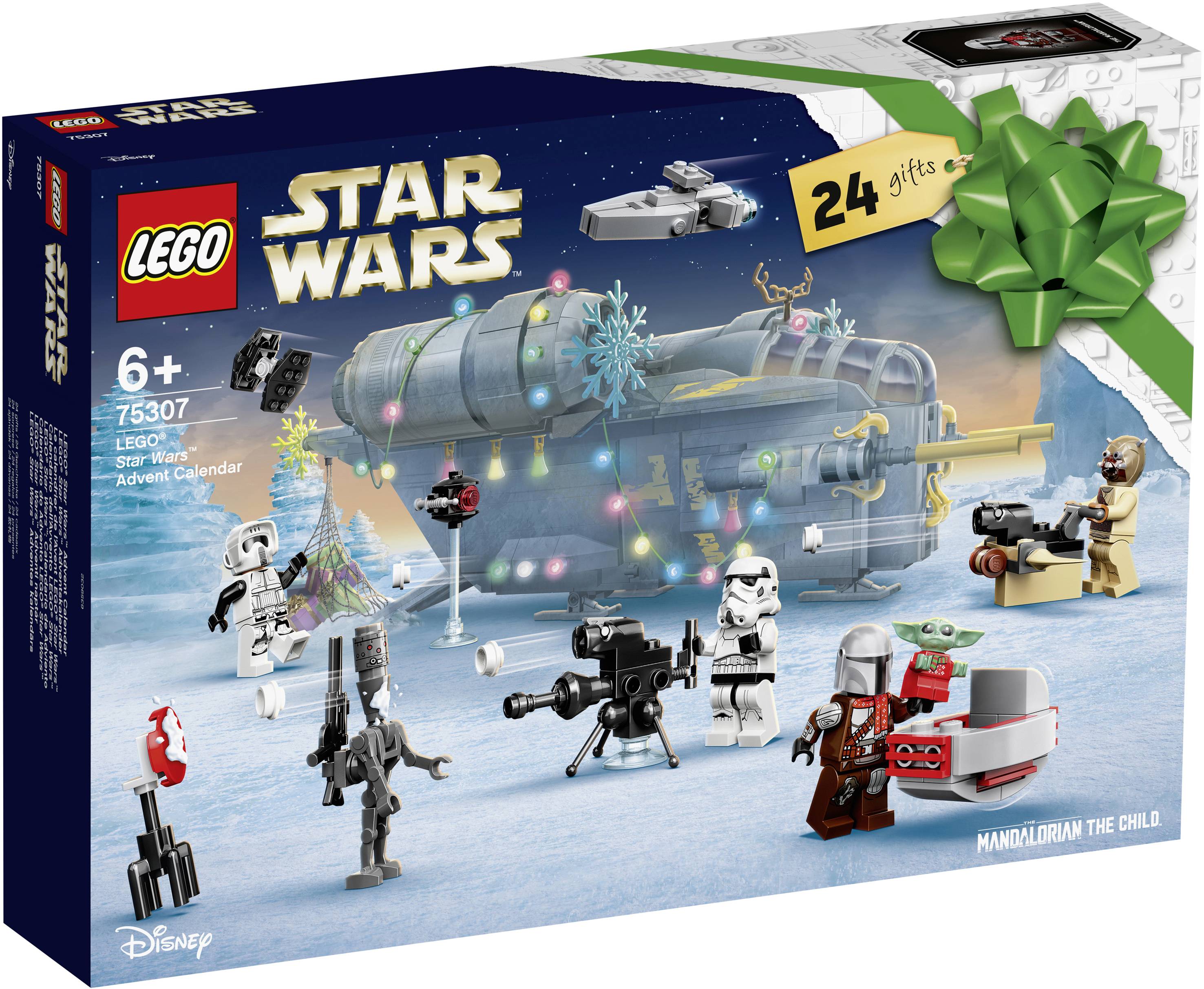 Überrasche Fans von Star Wars: The Mandalorian an jedem Adventstag mit etwas Coolem aus dem LEGO® Star Wars™ Adventskalender 2021 (75307). Hinter jedem der 24 Türchen verbirgt sich eine LEGO Minifigur, eine LEGO Figur, ein baubares Fahrzeug, Ausrüstung oder Zubehör aus der 2. Staffel von Star Wars: The Mandalorian. Mini-Modelle, maximales Vergnügen In diesem Adventskalender verbergen sich 7 LEGO Minifiguren/Figuren/Droiden: der Mandalorianer und das Kind namens Grogu (Baby Yoda) in Weihnachtsgewändern, ein Scout Trooper, ein Sturmtruppler, ein Tusken-Räuber, IG-11 und ein IT-O-Verhördroide. Kinder werden es lieben die Mini-Modelle zu bauen und mit der Razor Crest, dem TIE-Jäger, der Tusken-Balliste (Schneeballwerfer), den Übungszielen und dem Schwebe-Kinderwagen des Kindes zu spielen. Kreatives Vergnügen Seit 1999 bildet die LEGO Gruppe Sternenschiffe, Fahrzeuge, Schauplätze und Charaktere aus dem Star Wars Universum nach. Die begehrten LEGO Star Wars Bauspielzeuge sind fantastische Weihnachtsgeschenke für Kinder und Fans jeden Alters.