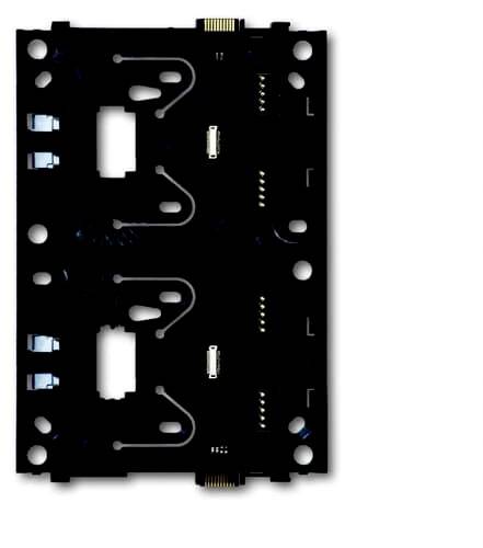Grundträger für Busch-priOn® zur Aufnahme und Kontaktierung von Drehbedienelement (6341-xxx-101), Bedienelement 1-fach (6340-xxx-101), Bedienelement 3-fach (6342-xxx-101), UP Wächter (6345-xxx-101), Standardabschlussleiste oben (6348-xxx-101), Standardabs