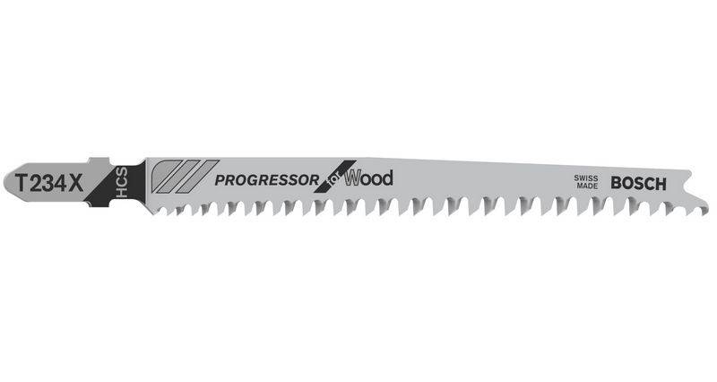 Das T 234 X Progressor for Wood Stichsägeblatt für den Gebrauch bei dickem oder dünnem Holz macht saubere gerade Schnitte. Die Zahngeometrie mit progressiv ansteigender Zahnteilung ermöglicht den Gebrauch bei Materialien mit unterschiedlichen Dichten. Die Kombination des Kegelschliffkörpers, der präzisionsgeschliffenen Zähne und der mehrfach geschliffenen japanischen Zahngeometrie ermöglicht sauberes Schneiden. Das Blatt aus Kohlenstoffstahl ist zum Schneiden von Weichholz und nicht-abrasiven Holzwerkstoffen geeignet. Es ist mit einer mittleren progressiven Zahnteilung (2-3 mm) und einer großen Länge (117 mm) ausgestattet, um eine breite Vielzahl an Holzwerkstoffen mit einer Dicke von 3-65 mm zu schneiden. Für den Gebrauch mit Stichsägen mit T-Schaft-Aufnahme. Werkstoff: HCS, Zahnausführung: freiwinkel-, zähnegeschliffen, Gesamtlänge [mm]: 117, Zahnteilung [mm]: 2-3, Einsatzbereiche: Weichholz (3-65 mm), Span-, Tischler-, Faserplatten, Progressiv, Typ: T 234 X