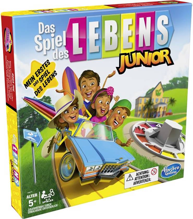 Bei der Junior-Edition von #Das Spiel des Lebens erleben die Kinder einen aufregenden Familienurlaub. Zunächst suchen sie sich ihr Transportmittel aus Auto, Zug, Schiff oder Flugzeug und machen sich auf den Weg zu ihrem Reiseziel. Unterwegs besuchen sie den Dschungel, den Strand oder sogar ein Schloss! Mit tierisch lustigen Aktionskarten erhöhen sie ihr Taschengeld, wenn es darum geht, wie ein Pinguin zu watscheln oder ein lustiges Fischgesicht zu machen. Aktivitätskarten können ebenfalls Geld einbringen und ermutigen die Kids dazu, über ihre schönsten Erfahrungen und andere lustige Themen zu plaudern. Doch wie das Leben so spielt, gibt es auch bei diesem Urlaub unvorhersehbare Ereignisse und die Spieler verlieren bei den Ereigniskarten Geld z. B. für verlorenes Gepäck oder vergessene Badesachen. Wer am Ende des Spiels über das meiste Geld verfügt, gewinnt. Das Spiel des Lebens Junior eignet sich prima für einen Familien-Spieleabend oder eine Verabredung. Für Kinder ab 5 Jahren. Hasbro Gaming sowie alle dazugehörigen Marken und Logos sind Marken von Hasbro, Inc. Spin to Win is a trademark of The Trustee of the Reuben B. Klamer L.T.