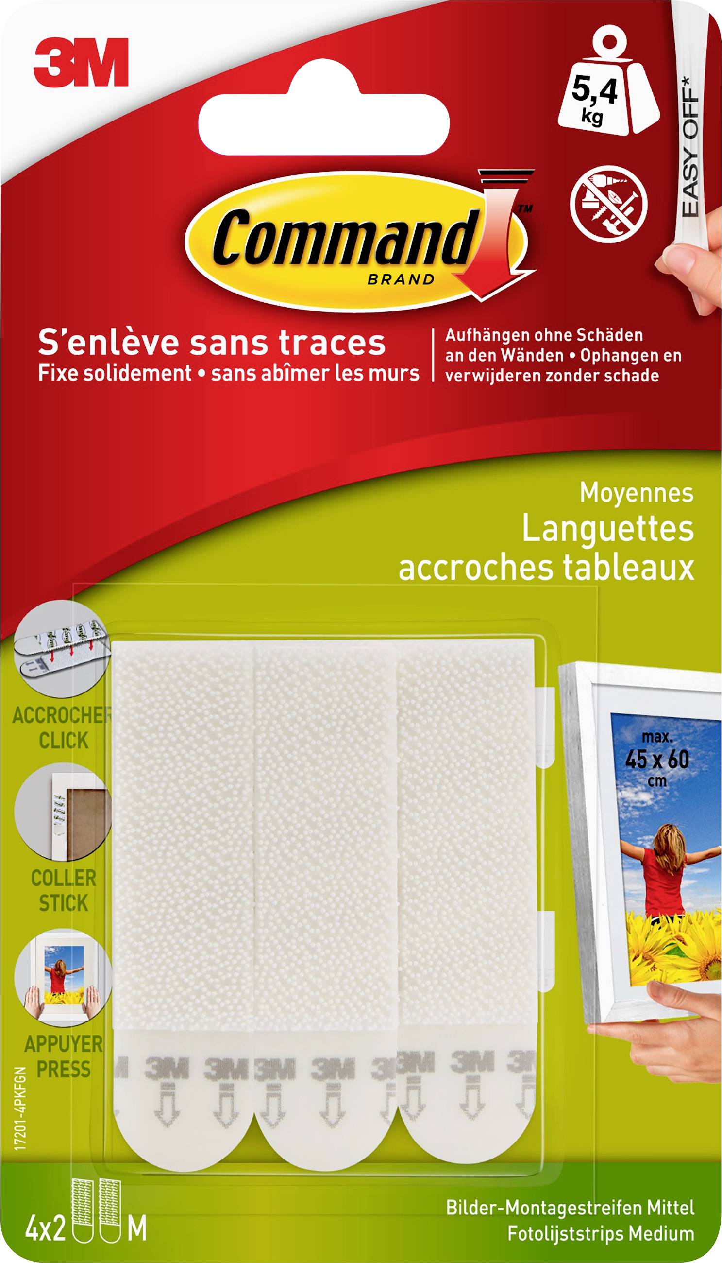 Mittelgroße Command™ Bilder-Montage Strips eignen sich perfekt zum sicheren und beschädigungsfreien Aufhängen Ihrer gerahmten Fotos und Bilder. Sie gewährleisten einen starken Halt und lassen sich rückstandsfrei ablösen – beschädigungsfrei dank 3M Technologie.