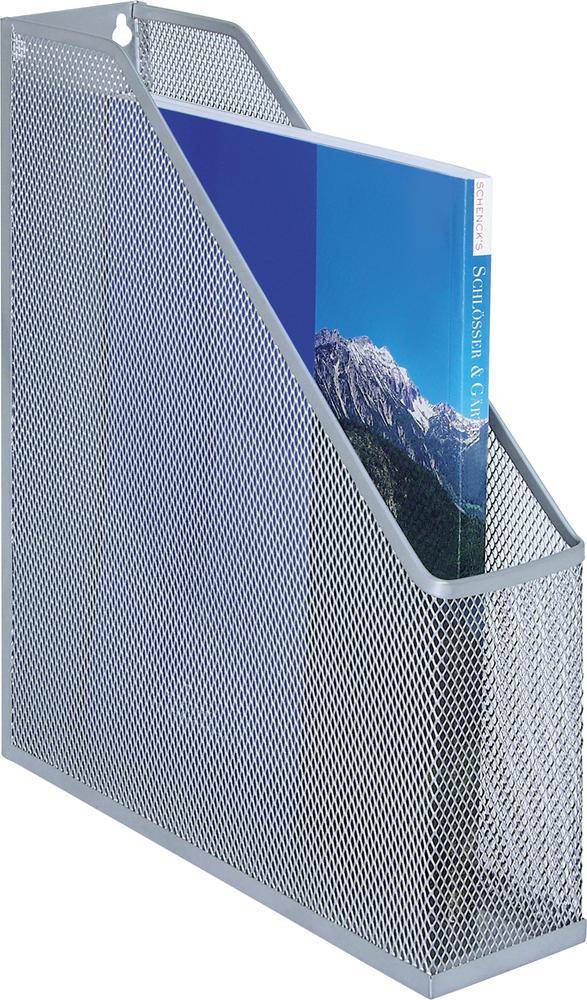 WEDO Stehsammler OFFICE, silber, aus pulverbeschichtetem Drahtmetall, passend für A4-Formate. Maße: 24,8 x 7,5 x 32,0 cm. Lieferung in Klarsichtbox.