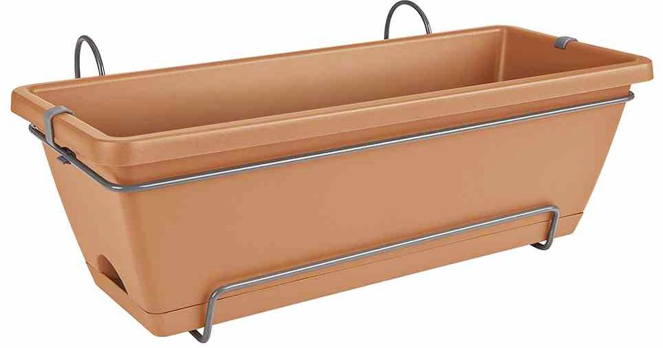 komplettes Set aus Balkonkasten, integriertem Untersetzer und Halter