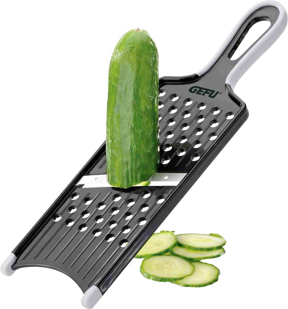 aus hochfestem, japanischen Stahl schneidet Scheiben aus Kartoffeln, Gurken, Möhren, Zucchini, Auberginen und Co.