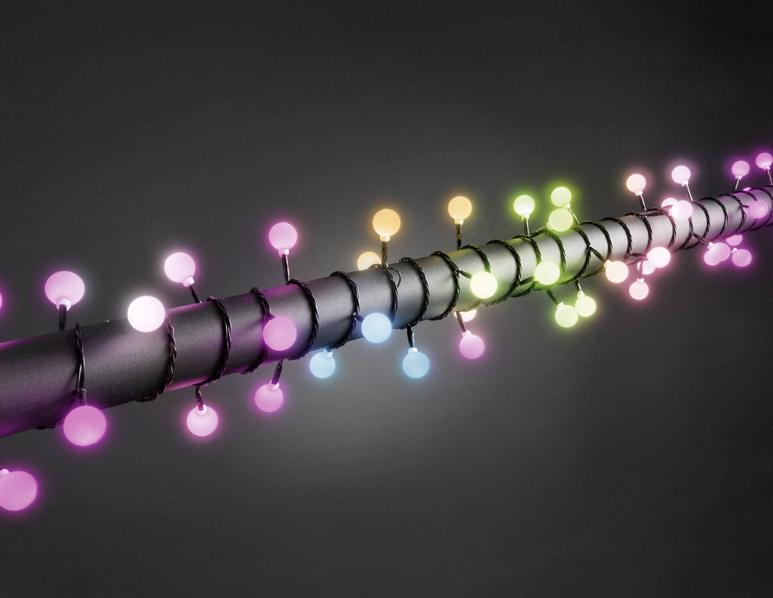 Weiterer Schmuck ist mit dieser effektvollen Micro-LED-Lichterkette eigentlich überflüssig. Wenn die RGB Dioden, 80 große Kugeln von innen heraus erstrahlen lassen, ist Ihr Adventsgarten bereits perfekt dekoriert. Das Design der Ausführung „Globe“ vereint die Optik kleiner Baumkugeln mit dem leuchtenden Effekt einer hochwertigen automatisch wechselnder Farblichterkette. Dieses LED-Produkt für den Außenbereich aus dem Qualitätshaus Konstsmide, ist nicht nur ein funkelndes Highlight für jede festliche Dekoration, sondern auch ein technisches Multitalent Ausgestattet mit acht Funktionen, Steuergerät und Memoryfunktion bietet diese Lichterkette jeglichen Komfort, den man sich für eine hochwertige Außendekoration wünscht. Die Firma Konstsmide ist seit über 40 Jahren auf die Herstellung hochwertiger Lichtdekorationen für den Innen- und Außenbereich spezialisiert und seit 1999 maßgeblicher Impulsgeber für umweltfreundliche, langlebige und sichere LED-Lösungen.
