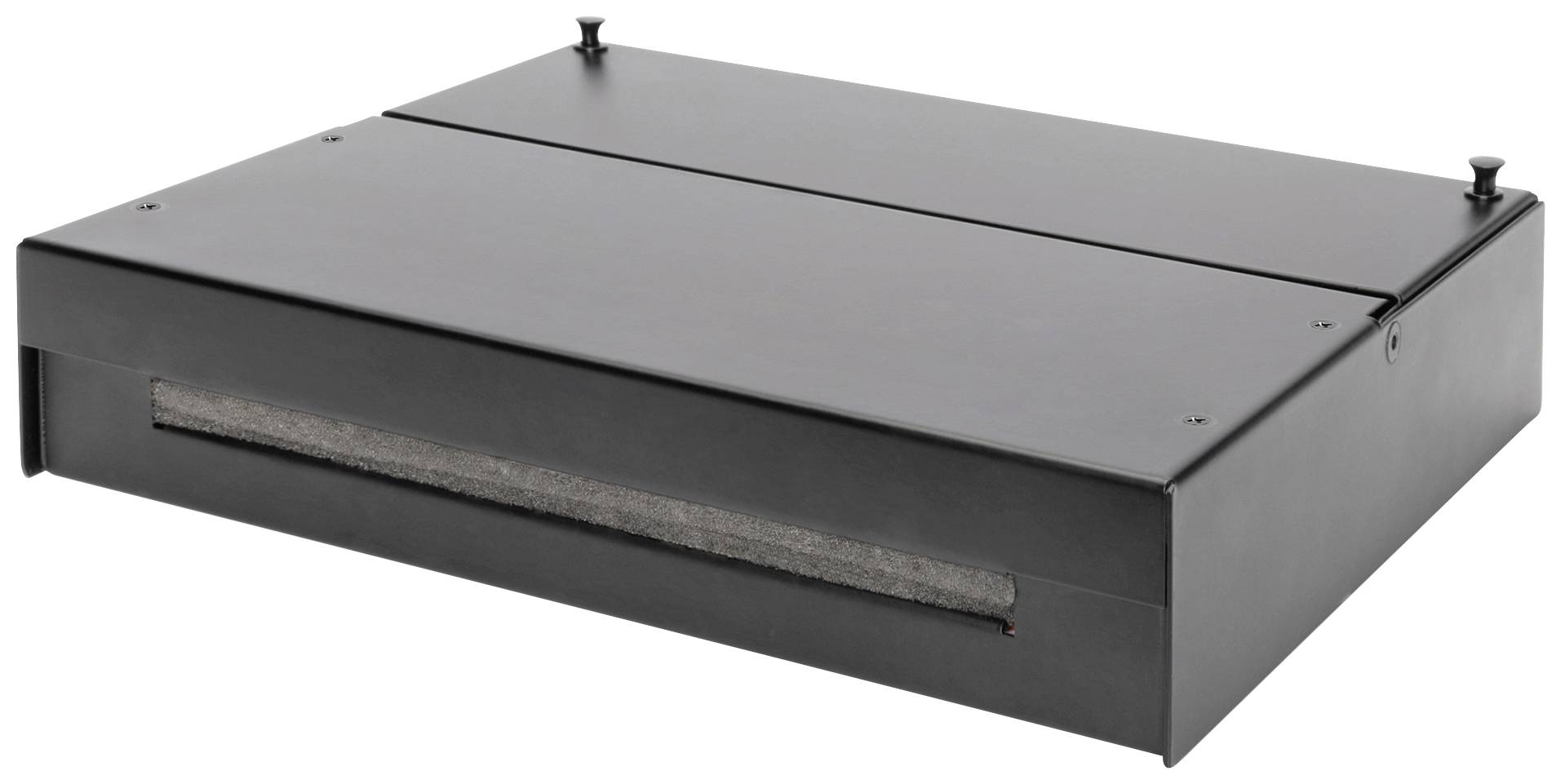 Das Patch-Feld verfügt über einen Klappdeckel mit Schnellverschlüssen, mit dem das Patch-Panel sowohl auf der Vorder-, wie auch auf der Rückseite nach IP20 Schutzart verschlossen wird
