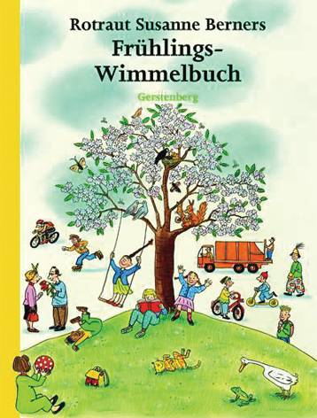 Rotraut Susanne Berners Wimmelbuch-Reigen geht weiter: Die ganze Stadt und ihre Umgebung stehen im Zeichen des Frühlings. Allmählich werden Bäume und Felder grün, die ersten Blumen blühen, an anderer Stelle wird gesät. Der Bauer hat alle Hände voll zu tun und Thomas plant eine Fahrradtour mit Lene. Im Streichelzoo dürfen die Tiere ihr Winterquartier verlassen und Manfred stolpert beim Joggen in die Arme von Susanne. Endlich ist der Rohbau des neuen Kindergartens fertig, so dass bald Richtfest gefeiert werden kann. Fröhlich kickt Ina ihren Ball über den Bürgersteig, was natürlich nicht ohne Folgen bleiben kann 16 Seiten. Ab 2 Jahren.