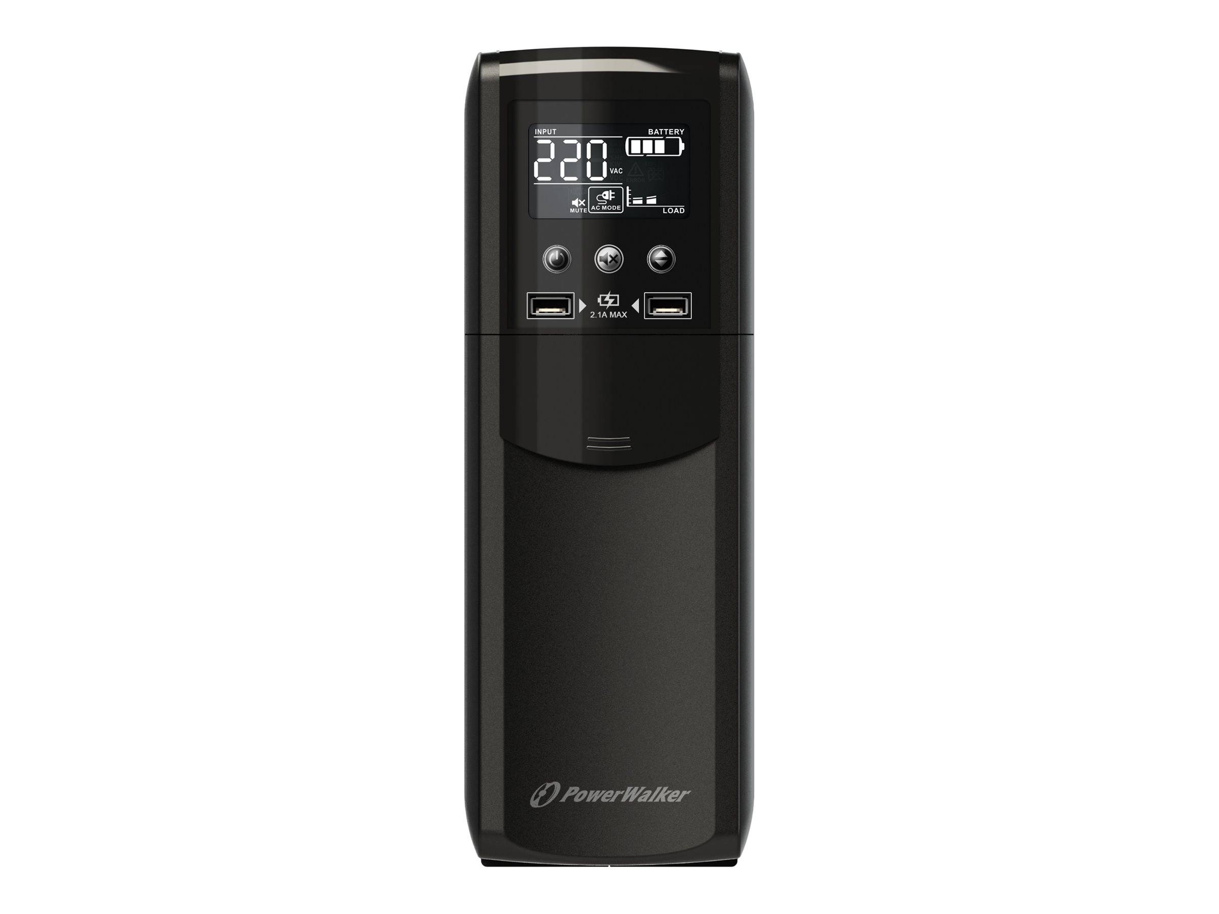 PowerWalker VI 1500 CSW FR. USV-Topologie: Line-Interaktiv, Ausgangskapazität: 1500 VA, Ausgangsleistung: 900 W. AC-Steckertypen: Type E/F, Anzahl der AC-Ausgänge: 4 AC-Ausgänge, Serielle Schnittstelle: RJ-45. Batteriekapazität: 9 Ah, Batteriespannung: 12 V, Akkuladezeit: 8 h. Formfaktor: Tower, Produktfarbe: Schwarz, Anzeige: LCD. Breite: 99 mm, Tiefe: 410 mm, Höhe: 280 mm