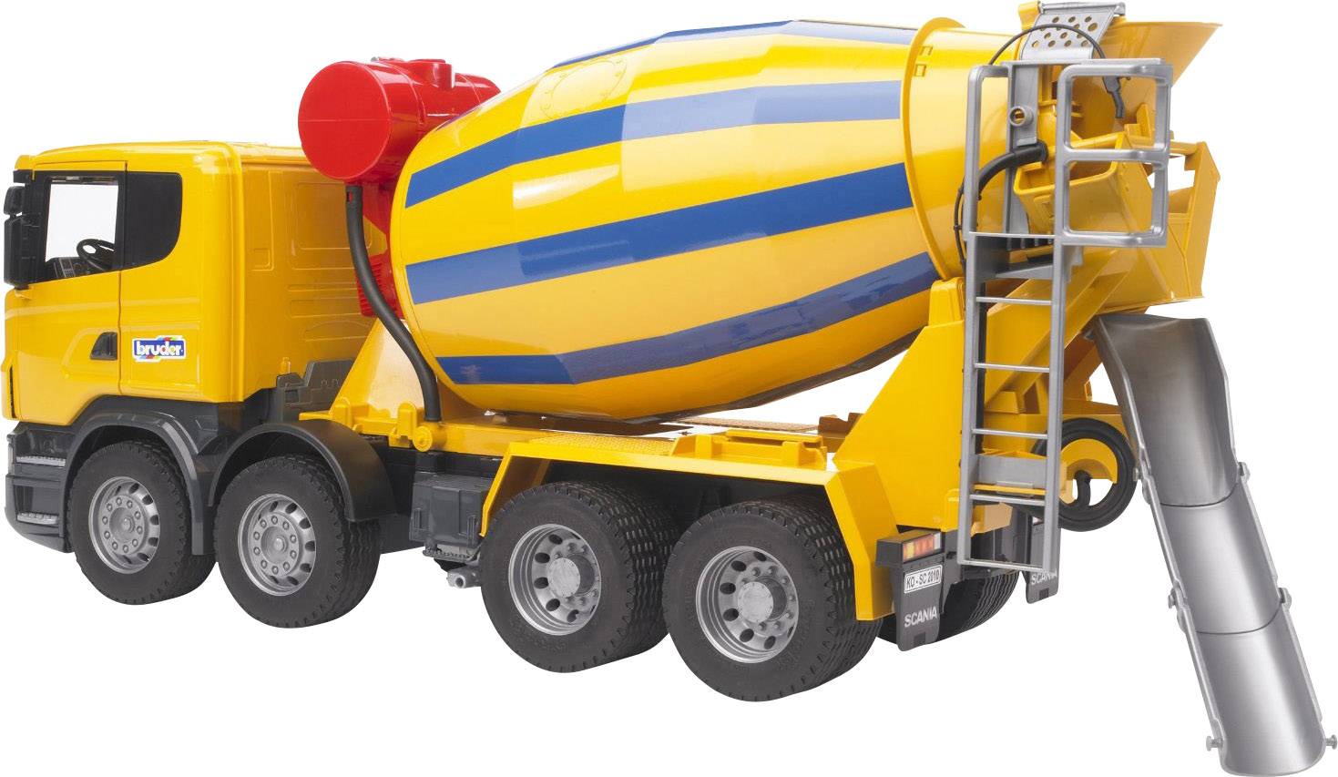 Premium bis ins Detail ? das ist der Leitspruch der SCANIA R-Serie. Funktionalität, Verarbeitung und Design dieses Fahrerhauses sprechen für sich. Somit ist es auch keine Überraschung, dass dieses Fahrzeug zum Highlight der LKW's der Profi-Serie von BRUDER wird. Das wie gewohnt detailgetreu nachgebildete Fahrerhaus hat eine Frontscheibe aus bruchsicherem Polycarbonat. Die Spiegel des SCANIA LKW´s können angeklappt und die Türen können geöffnet werden. Die Trommel des Betonmischers kann durch eine im Wassertank ausklappbare Handkurbel gedreht werden (Trommel mit Förder- und Mischschnecke). Wie beim Original geschieht das Entleeren der Trommel durch Umkehr der Drehrichtung. Die Schnecke im Inneren der Trommel fördert dann das Füllgut nach hinten zur Auslaufrutsche. Es liegen zwei Auslaufbleche zum Anstecken bei.