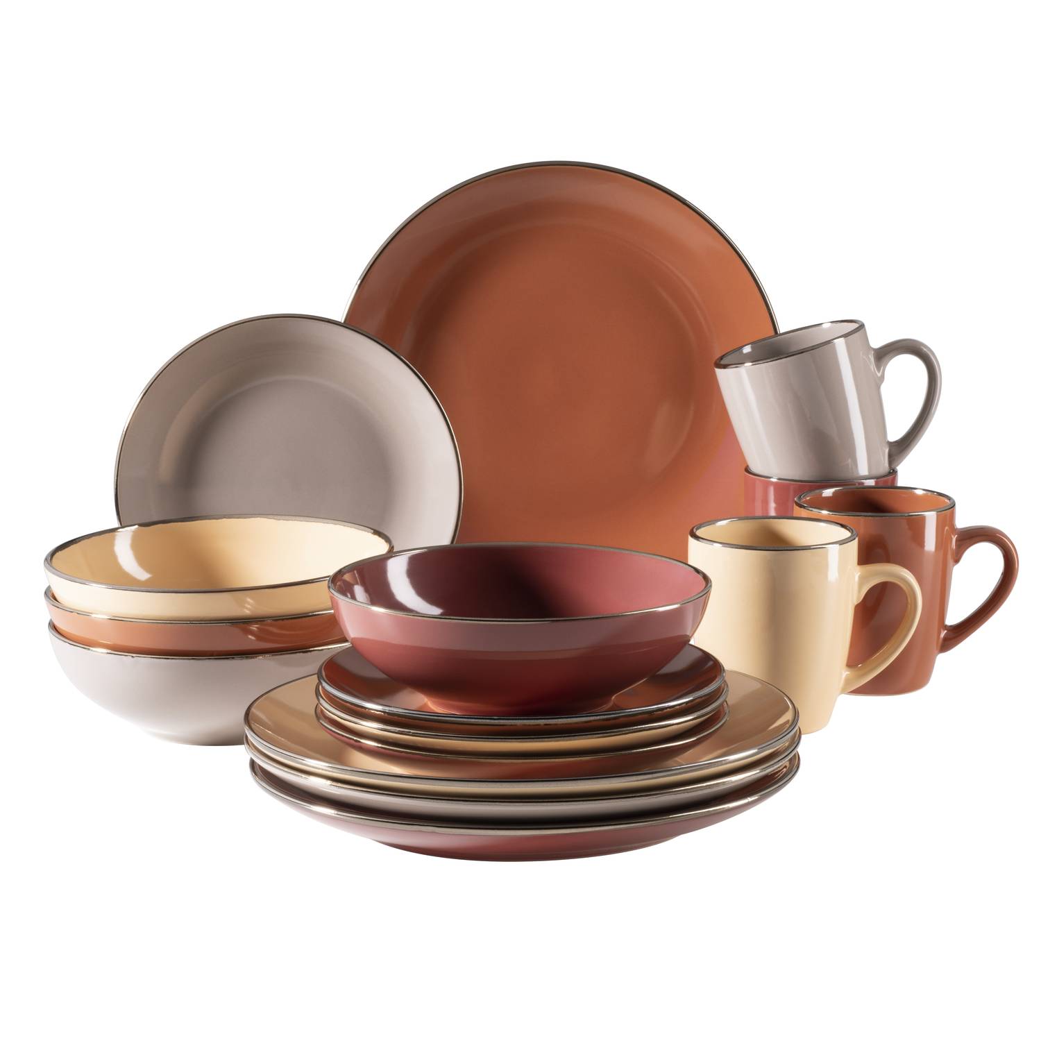 - Jedes Teil im Geschirrservice ist 1x in diesen harmonisch aufeinander abgestimmten Farben enthalten: Taupe, Beige, Terracotta, Mahagonirot
