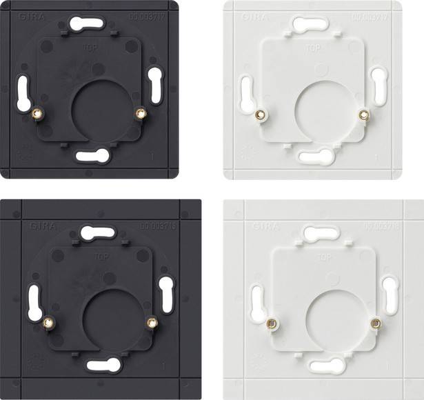 Montageplattenset System 55 4 Platten Merkmale: Montageplattenset für Abdeckrahmen System 55 und Gira E22. Die Montageplatten dienen als Adapterplatte zur Befestigung der Funk Wandsender auf glatten oder transparenten Oberflächen, z. B. Glasscheiben. Die Montageplatte ermöglicht ein optisch sauberen Abschluss auf der Rückseite der Oberfläche. Abbrechbar: dadurch auch zum Aufbau von Mehrfachkombinationen oder zur Montage auf Gerätedosen geeignet.