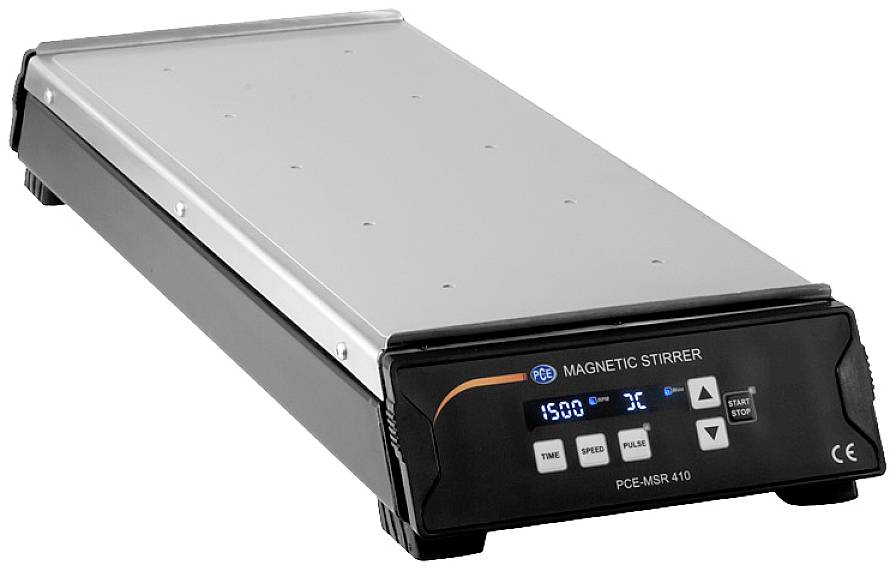 Laborrührer bis 400 ml je Rührstelle / 10 Rührstellen / 300 bis 1500 U/min / Timerfunktion / Pulsmodus Dieser Laborrührer ist besonders für eine Reihenuntersuchung geeignet. Durch die 10 synchron drehenden Rührstellen des Laborrührers ist die Reproduzierbarkeit der Ergebnisse sichergestellt. Die Rührgeschwindigkeit kann zwischen 300 und 1500 Umdrehungen pro Minute in 10er Schritten eingestellt werden. Rührzeiten können am Laborrührer in Minuten Schritten zwischen 1 und 999 Minuten angewählt werden. Als weitere Option kann an dem Laborrührer ein Drehrichtungswechsel automatisch erfolgen. Als Wechselintervall stellt der Laborrührer ein Zeitintervall zwischen 30 und 99 Sekunden zur Verfügung. Um ein sicheren Stand des Laborrührers zu gewährleisten ist das Gehäuse mit 4 Gummibesetzten Füßen ausgestattet. Die Rührplattform des Laborrührers ist aus Edelstahl gefertigt und zur Rutschhemmung mit einer Silikonschicht überzogen. Pro Rührstelle auf dem Laborrührer können Gefäße mit einem Durchmesser von ca. 80 mm aufgestellt werden. Pro Rührstelle ist der Laborrührer in der Lage Volumen bis zu 400 ml zu rühren.