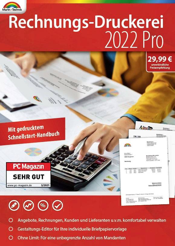 Markt & Technik Rechnungsdruckerei 2022 PRO Vollversion, 1 Lizenz Windows Kaufmännische Software