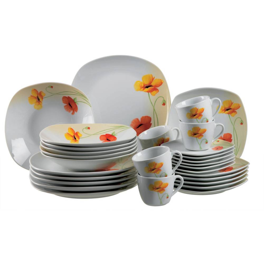 Mit diesem schönen Kombiservice weht ein Hauch einer leichten Sommerbrise in jedes Zuhause. Verziert mit rot-orangenen Mohnblumen, zaubert das Set im Handumdrehen Wärme und ein schönes Ambiente. Die Serie "Papavero" zeichnet sich durch eine hohe Bruchfestigkeit und Funktionalität aus, das Set kann auch ohne Probleme in Spülmaschine und Mikrowelle gegeben werden.