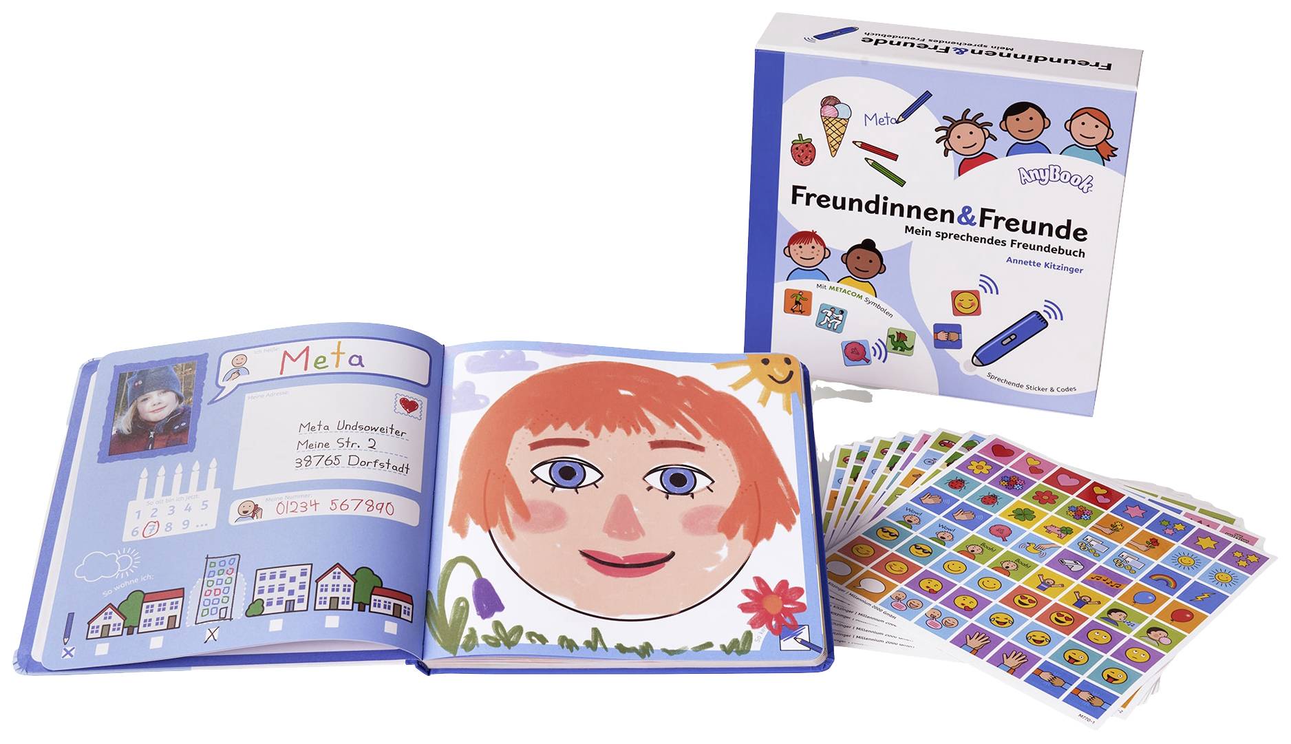 Freundinnen & Freunde: Mein sprechendes Freundebuch mit METACOM SymbolenDieses Buch ist für dich und deine Freundinnen und Freunde!… und natürlich auch für Mamas und Papas, Geschwister und Großeltern, Erzieher*innen und Betreuer, und viele mehr.Alle können sich mit ihren Steckbriefen, Bildern, Stickern und Sprachaufnahmen in deinem Freundebuch verewigen. Der zusätzliche Geburtstagskalender erinnert dich immer an die Geburtstage deiner Freundinnen und Freunde.So wird dein sprechendes Freundebuch zu einem ganz besonderen Erinnerungsschatz!Das erste inklusive Freundebuch mit METACOM Symbolen, sprechenden Stickern und Anybook Audiocodes für eigene AufnahmenDieses Freundebuch ist für alle – egal, ob man lieber spricht, schreibt, malt, ankreuzt, einklebt oder zuhört. Alle Freundinnen und Freunde aus KiTa, Kindergarten, Grundschule oder Förderschule können sich mit ihrem Steckbrief verewigen. Auf den bunten Doppelseiten können Kontaktdaten, Vorlieben sowie gemeinsame Erinnerungen mit Fotos, Zeichnungen, Stickern, geschriebenen und gesprochenen Texten festgehalten werden.Durch den interaktiven Charakter, die Kommunikation mit METACOM Symbolen und die vertonten Elemente eignet sich das Erinnerungsalbum nicht nur für Kindergartenkinder, sondern auch für Menschen, die in ihrer Lautsprache beeinträchtigt sind, sowie für Kinder ohne ausreichende Deutschkenntnisse.HIGHLIGHTS• Das erste inklusive Freundebuch mit METACOM Symbolen, über 500 sprechenden Stickern und Anybook-Codes für eigene Aufnahmen – hier können alle mitmachen!• Das Album bietet durch die Vertonung mit dem Anybook Audiostift und das METACOM Symbolsystem unterschiedliche Möglichkeiten der Unterstützten Kommunikation. • Eine schöne Möglichkeit, mit anderen ins Gespräch zu kommen, Inklusion zu fördern und Erinnerungen festzuhalten.ÜBER DAS BUCHDas Buch bietet Platz für insgesamt 22 Personen, die sich auf jeweils zwei Doppelseiten verewigen können. Neben dem Eintragen der Kontaktdaten und des Geburtstags gibt es viel Platz zum Malen, Stickern und Festhalten der eigenen Vorlieben und Wünsche. Auf den Buchseiten befinden sich gedruckte Codes für eigene Aufnahmen mit dem Anybook Reader. Dem Buch liegen 8 Stickerbögen mit insgesamt 512 Stickern mit METACOM Symbolen bei, die zum Individualisieren der Eintragseiten genutzt werden können. Für die Sticker stehen fertige Audiodateien mit Sprachaufnahmen und Soundeffekten zur Verfügung, welche heruntergeladen werden können. Alle Anybook-Codes und Sticker können auch mit eigenen Aufnahmen besprochen werden. Zum Aufnehmen und Abspielen der Audioaufnahmen wird ein Anybook Audiostift DRP-5100 benötigt (nicht im Lieferumfang enthalten).Die hochwertige Verpackung kann als praktische Aufbewahrungs- und Transportbox für das Freundebuch genutzt werden: Das Kind gibt seinen Freund*innen das Buch zusammen mit dem eigenen Anybook Audiostift mit nach Hause – so ist der Audiostift immer gut geschützt.ÜBER DIE AUTORINAnnette Kitzinger ist Grafikerin und entwickelte die ersten METACOM Symbole für ihre nicht-sprechende Tochter Meta. Da auch andere Kinder und Erwachsene von den Symbolen profitierten, erweiterte sie den Wortschatz mit dem Ziel, eine besonders klare, einfach erkennbare Symbolsammlung für die Unterstützte Kommunikation (UK) zu schaffen. Heute gibt es mehr als 10.000 METACOM Symbole, mit denen Menschen aller Altersgruppen kommunizieren. Das Bildwörterbuch „Zeig es, sag es!“ mit METACOM Symbolen und Anybook Audiocodes (erschienen im Autismusverlag) ist inzwischen zum Klassiker geworden.