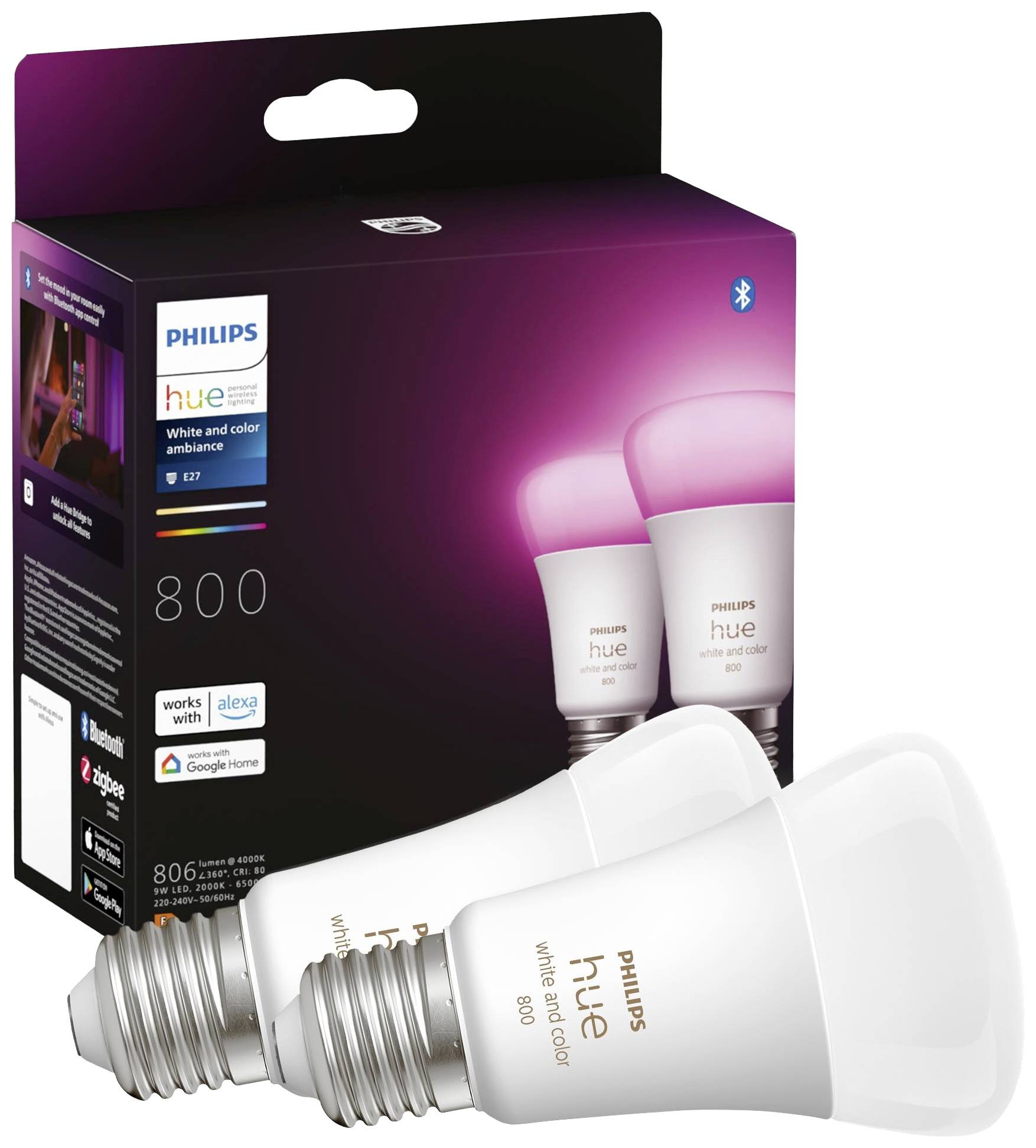 08719514328365, Philips Hue, 871951432836500, Hue White & Col. Amb. E27 Doppelpack 2x570lm 60W, Funksteuerung, Funk-Fernsteuerung, LED Leuchten,