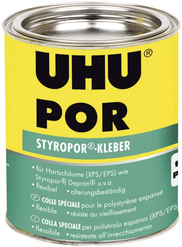 UHU por ist ein schnellanziehender Spezialklebstoff zum Kleben von Polystyrol-Hartschaum (z. B. Styropor®), auch in Kombination mit anderen Materialien. Der elastische Klebefilm ist hervorragend alterungsbeständig , nahezu farblos und wasserbeständig.