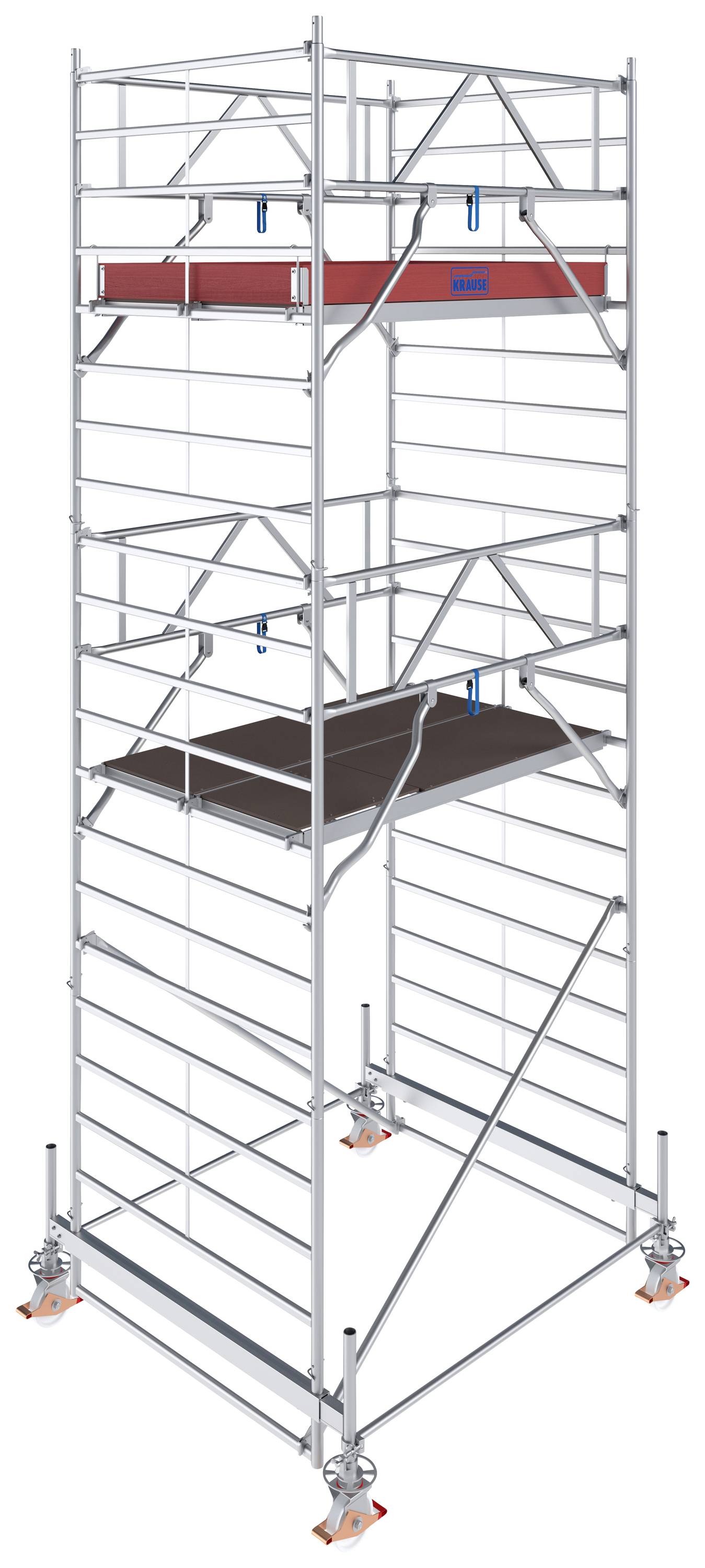 Die 6-Punkt-Fixierung des GuardMatic-Systems sorgt für maximale Stabilität in der Höhe. Das einzigartige selbstsichernde KRAUSE-Verriegelungssystem mit einer formschlüssigen Verbindung ermöglicht den einfachen, schnellen und sicheren Auf- und Abbau