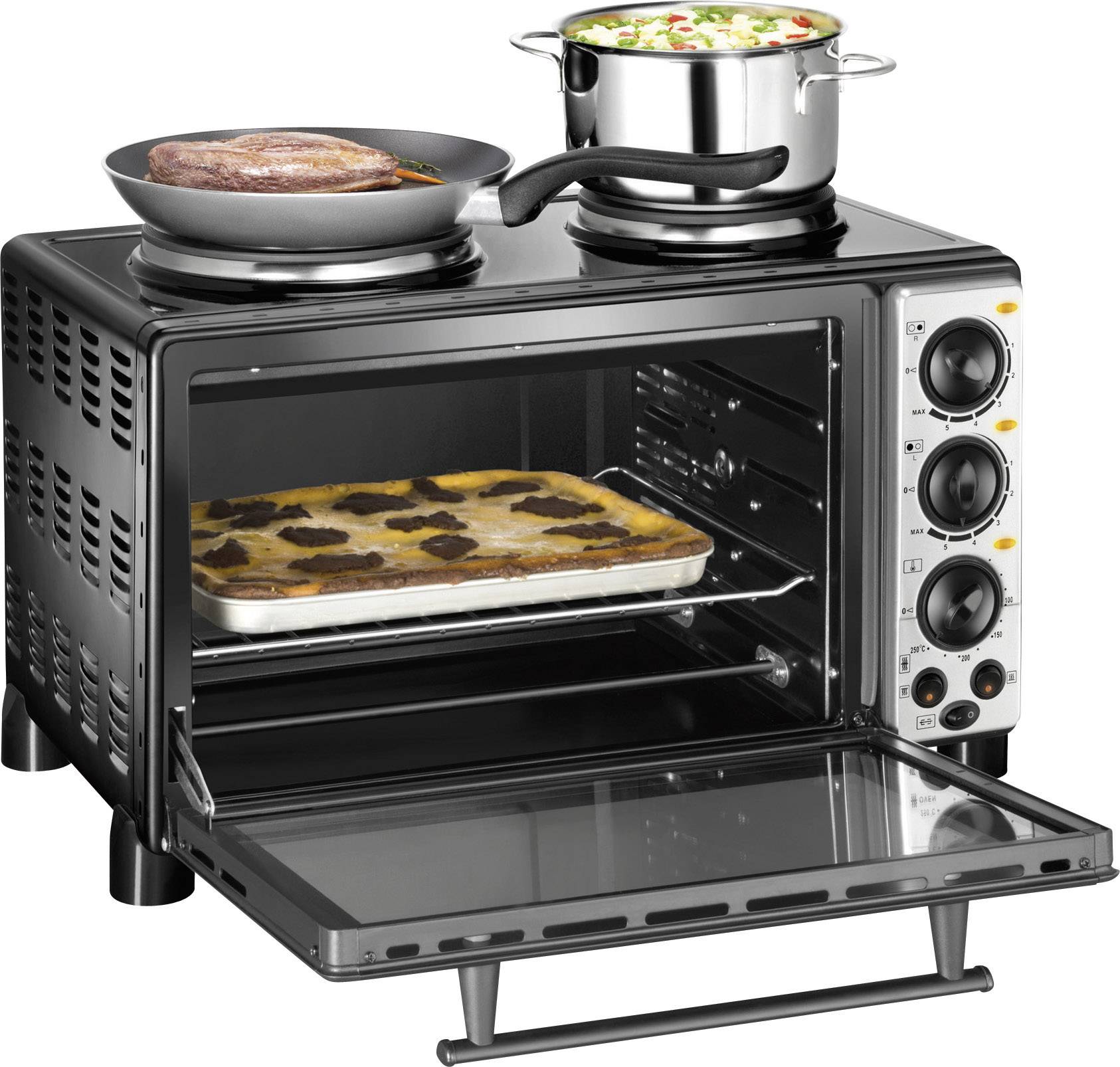 28 Liter Back-, Grill-, Drehspießofen mit Kochplatten