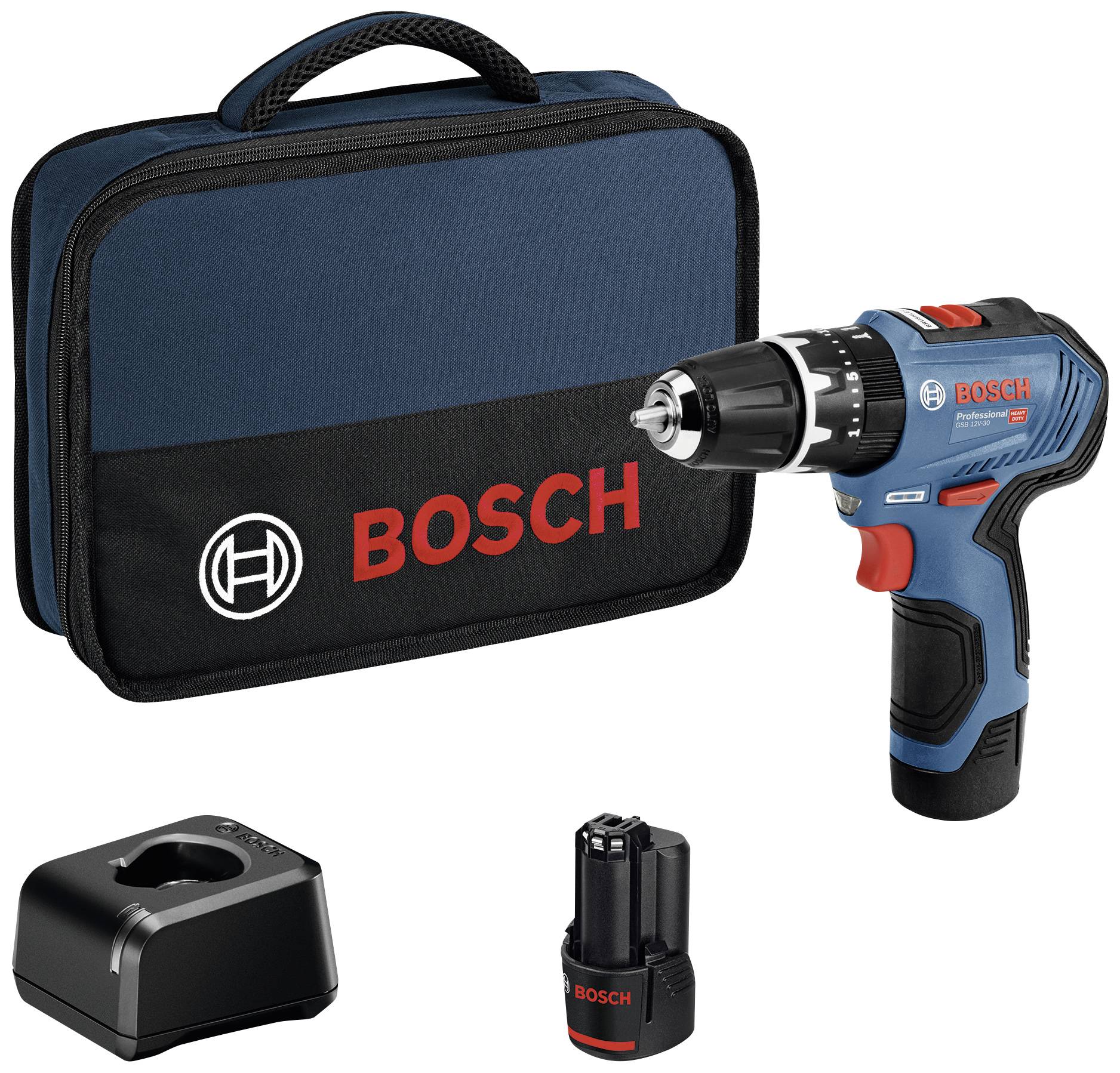 Bosch Professional GSB 12V-30 -Akku-Schlagbohrmaschine bürstenlos, inkl. 2. Akku, inkl. Ladegerät, inkl. Tasche