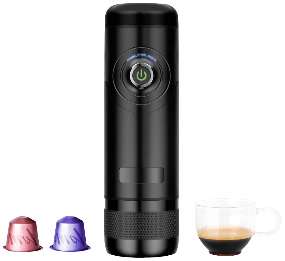 Unsere portable Espressomaschine für Originalkapseln von Nespresso und L'OR als perfekte Wahl für Unterwegs. Überall authentischen Espresso mit 18 bar Druck genießen: vollautomatisch und einfach zu bedienen. Im Auto, Camping, Boot, Hiking auf Reise oder Unterwegs. Einfach und selbsterklärend zu bedienen: mit kaltem oder heißem Wasser befüllen, Taste drücken und los geht’s. Einfach zu reinigen. Schnelles Aufladen der Batterie: Netzkabel oder 12 V Anschluss wie bei einem Auto Zigarettenanzünder.
