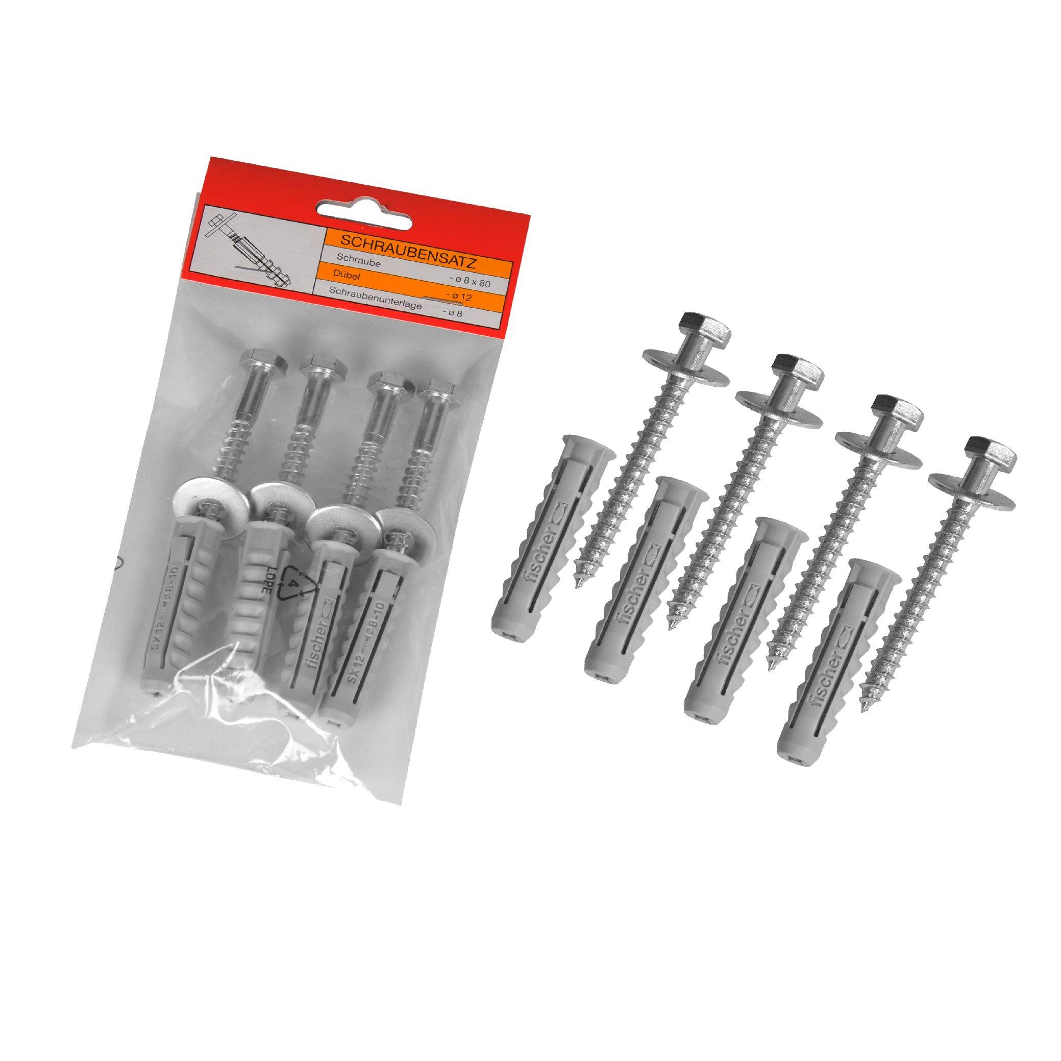 A.S. SAT 46007 Schraubensatz / 8 x 80 mm / Fischer SX-Dübel 12 mm