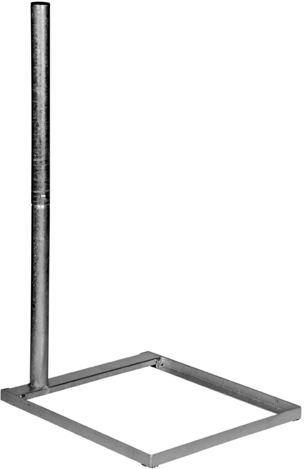 Feuerverzinkter Stahl · Geeignet für Betonplatten 50 x 50 cm (die Platten können auch mehrfach aufeinander gestapelt werden) · Antirutsch-Gummifüße unter der Platte.