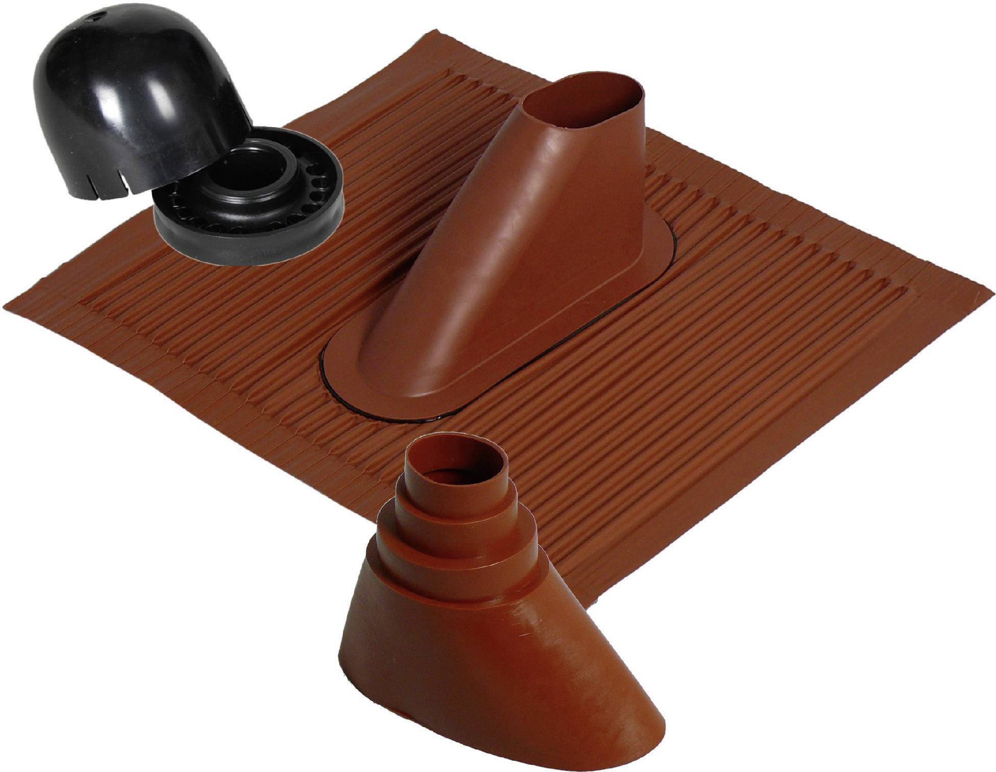 Alu-Dachziegel (450 x 500 mm) + Mastkappe mit Kabeleinführung + Gummitülle.
