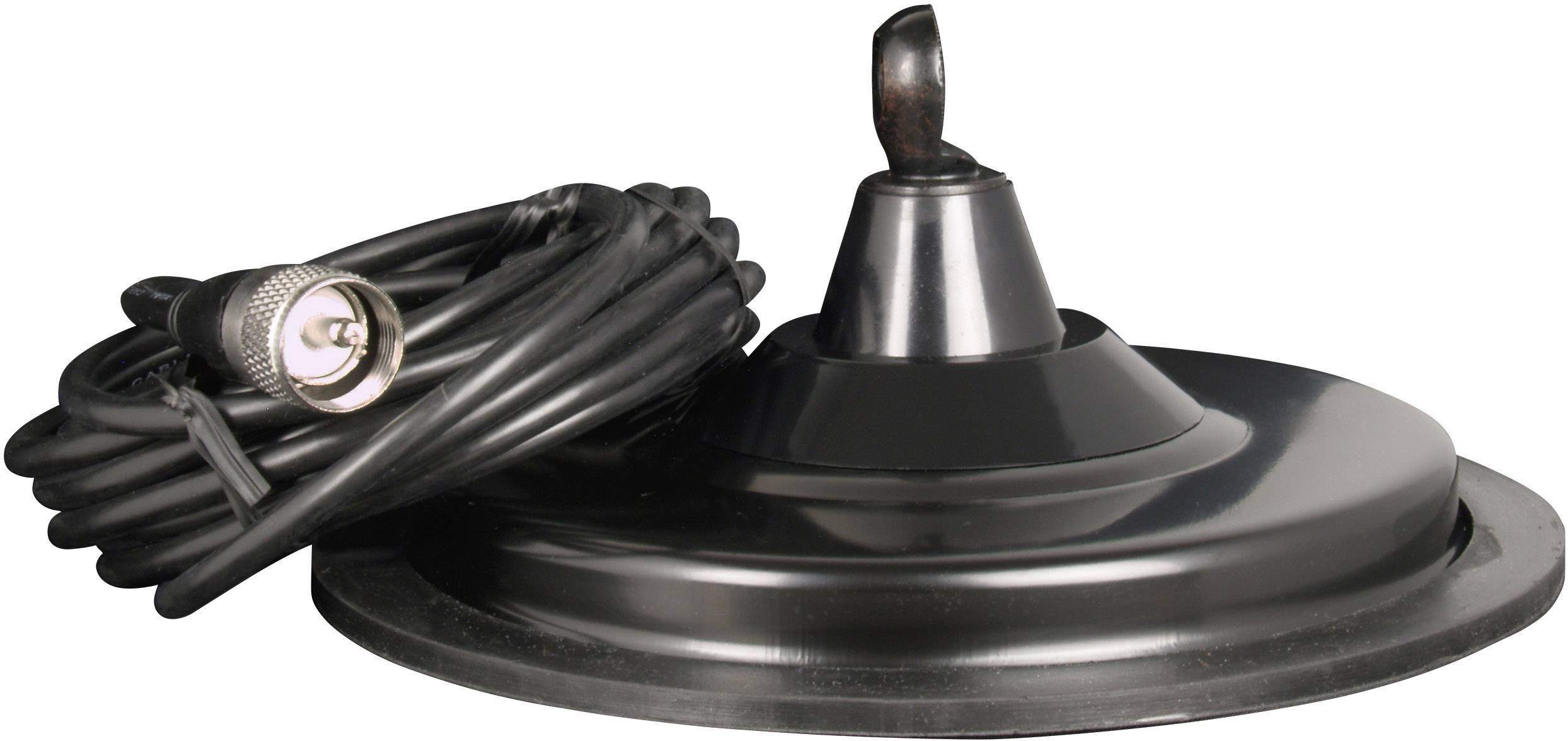 Hochwertiger Magnetfuß mit vormontierten 4,5 m Antennenkabel mit PL-Stecker und Gummischutz.