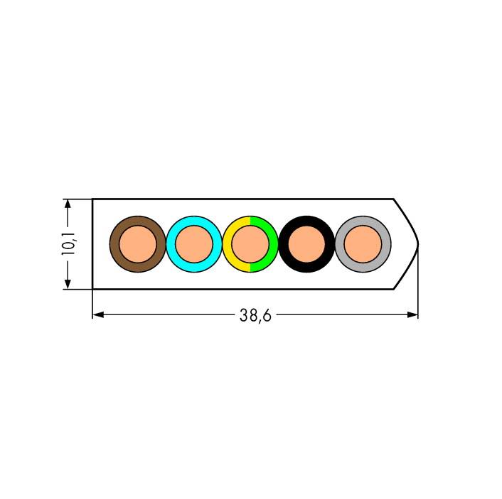 Flachkabel; aus PVC; 5 x 10 mm²; 3L + N + PE.