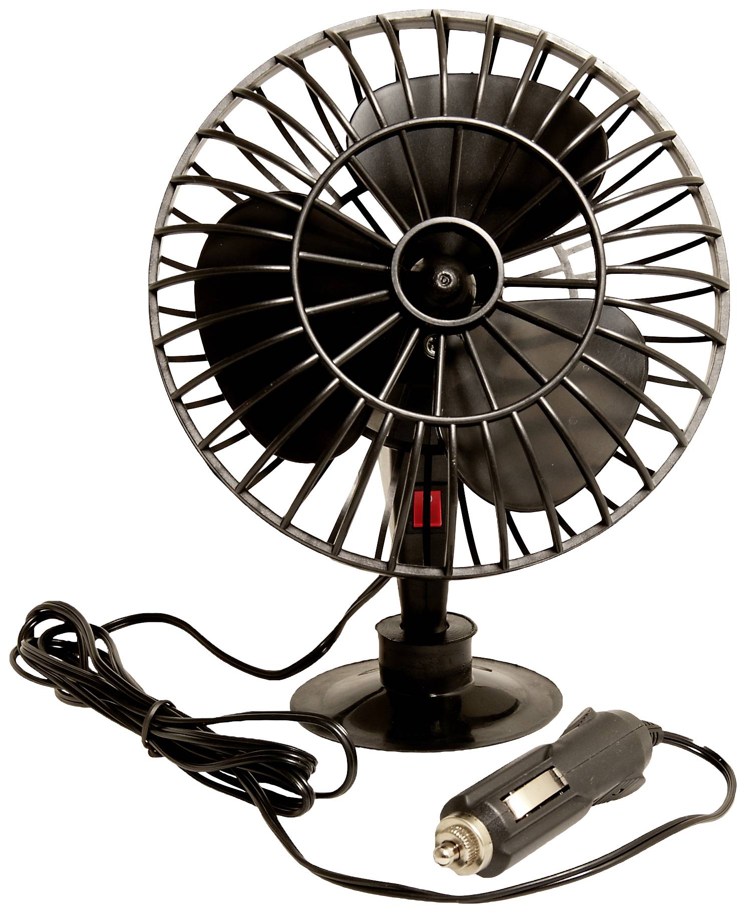 Autoventilator mit Kunststoff-Schutzgitter und Saugnapf-Befestigung.