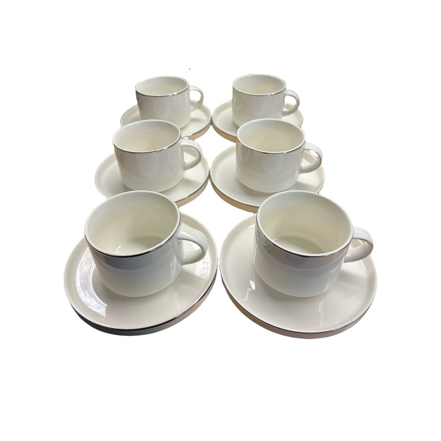 12-Teiliges Kaffeeset aus Porzellan mit Untertassen Kaffeebecher Tasse mit Silber Umrandung Kaffeetasse