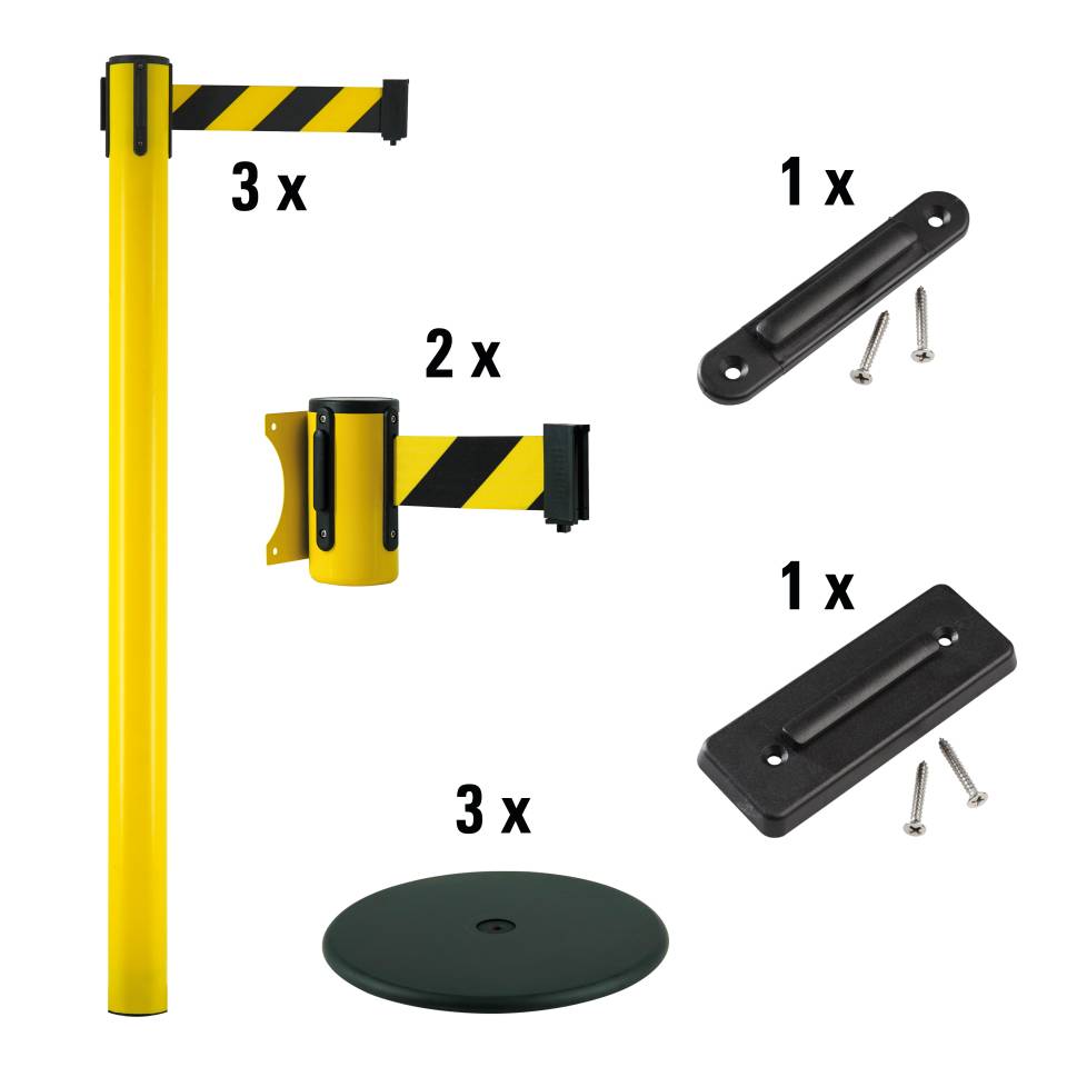 K.57 Vorteils-Set Absperrpfosten, gelb, Kunststoff, bestehend aus 3x Pfosten, gelbKunststoff, 3x Bodenplatte, 2x Wandkassette, gelb, 1x Wandclip magnetisch sowie 1xWandclip Kunststoff