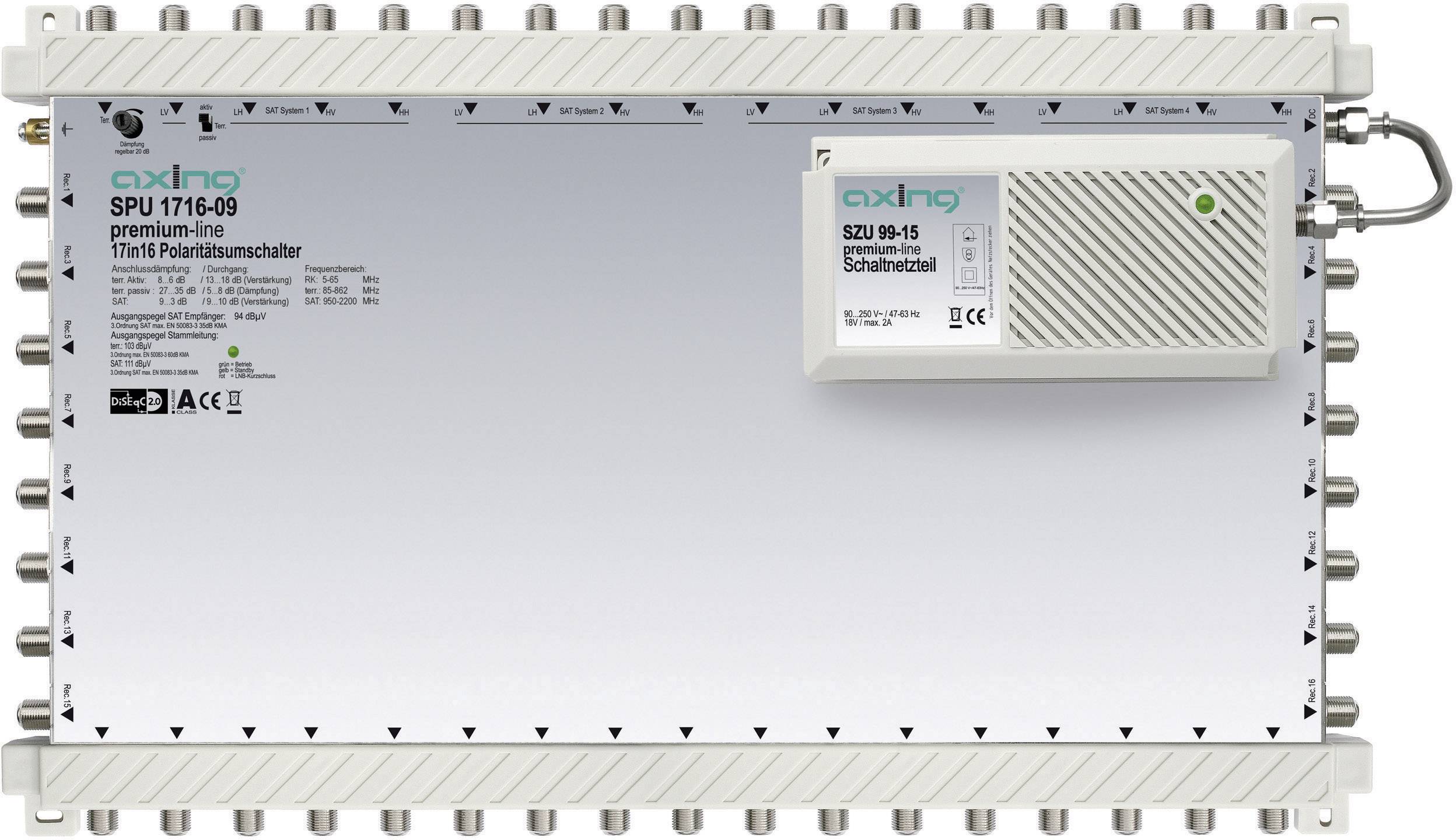 Axing SPU 1716-09 SAT Multischalter Eingänge (Multischalter): 17 (16 SAT/1 terrestrisch) Teilnehmer-Anzahl: 16