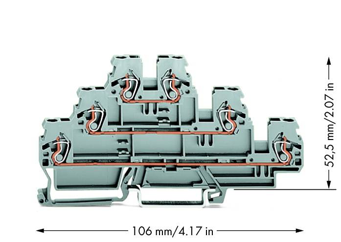 WAGO 870-551 Dreistock-Durchgangsklemme 5 mm Zugfeder Belegung: L, L, L Grau 50 St.