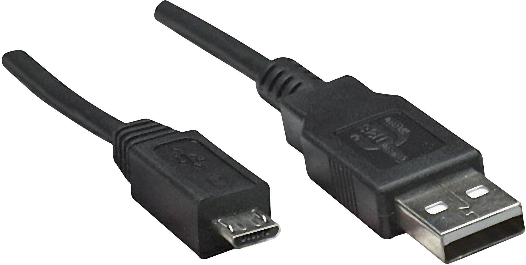 Manhattan USB 2.0 Anschlusskabel [1x USB 2.0 Stecker A - 1x USB 2.0 Stecker Micro-B] 1.00m Schwarz vergoldete Steckkontakte