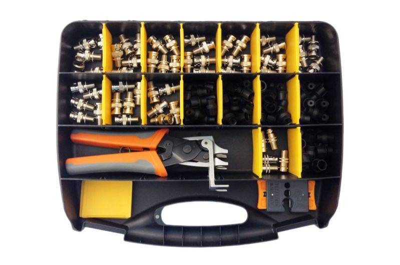 CaP-KIT HD Starter Telecom & Security, BNC Steckverbinder HD-TVI Starter Kit mit 50 Steckern, Werkzeuge